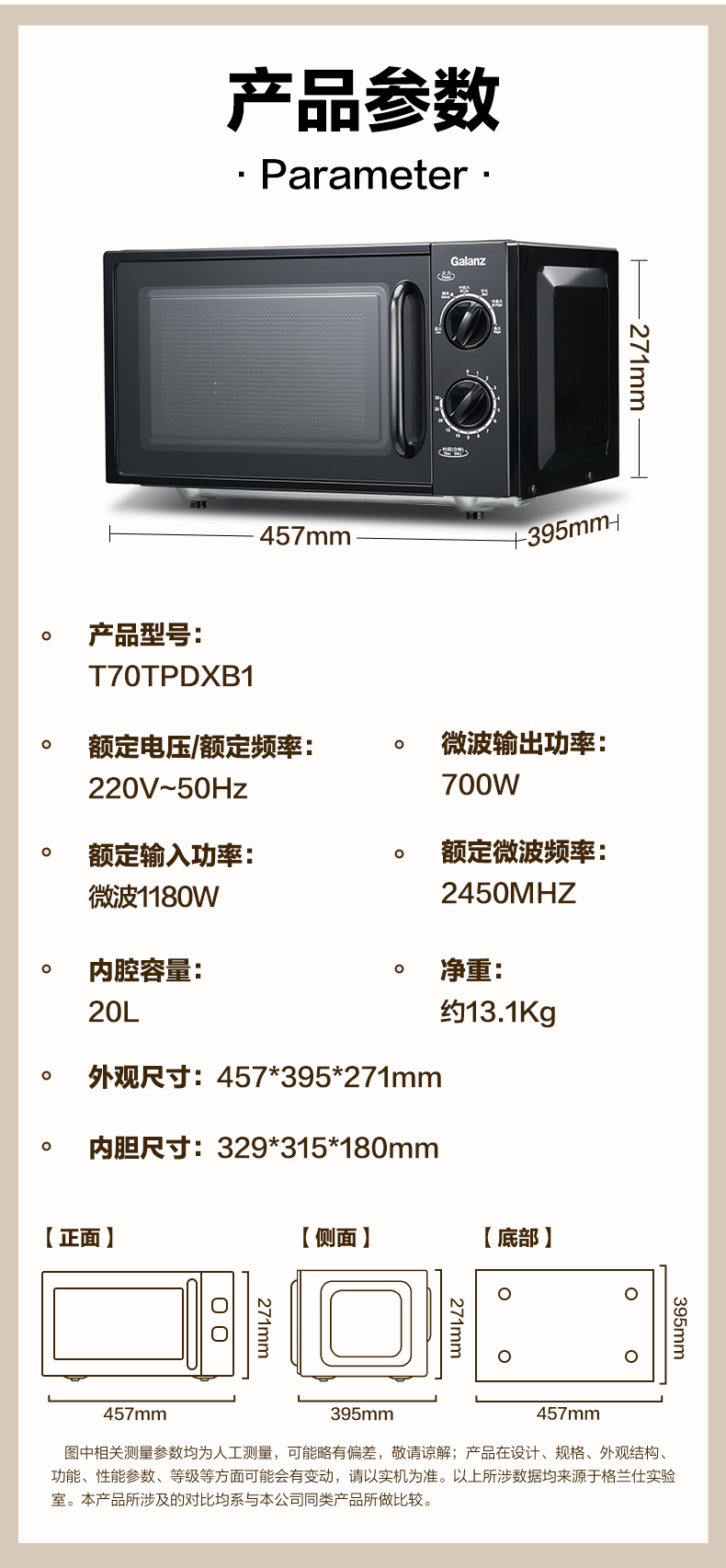 【29台】格兰仕(Galanz)微波炉 20升家用平板速热 旋钮操作简单易用 快速解冻易洁内胆微波炉XB1