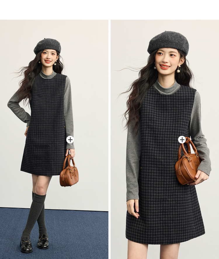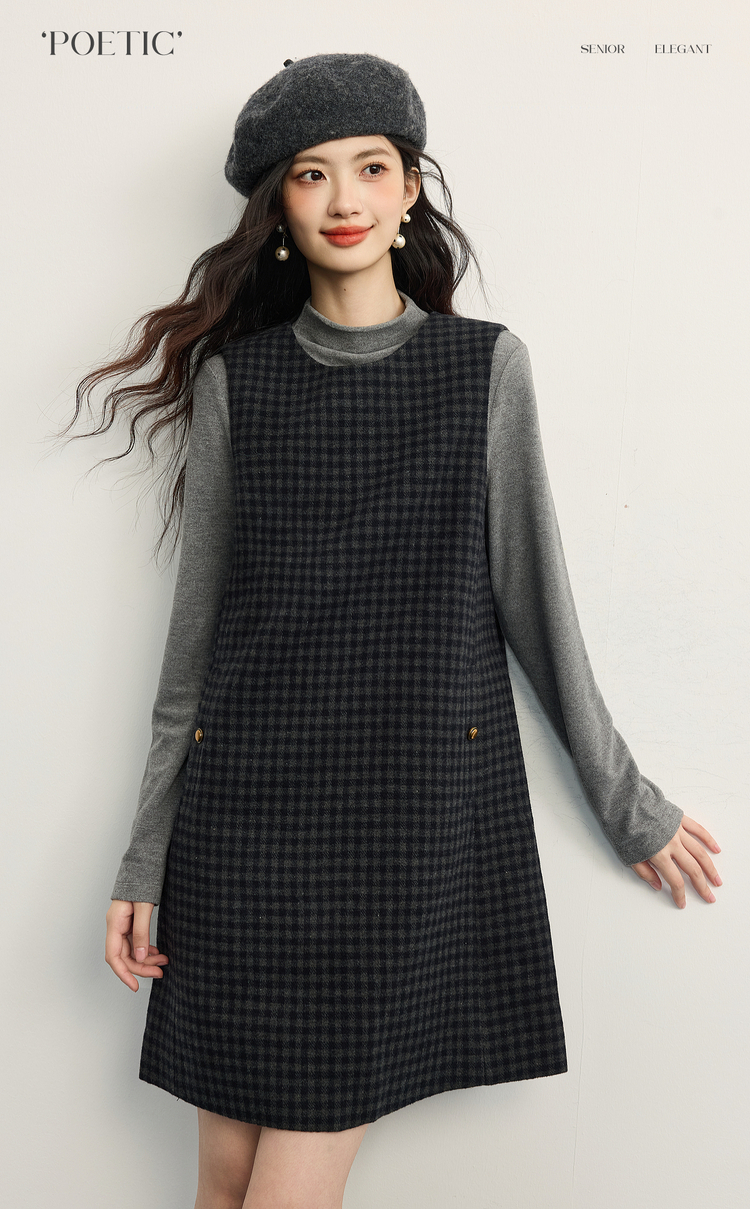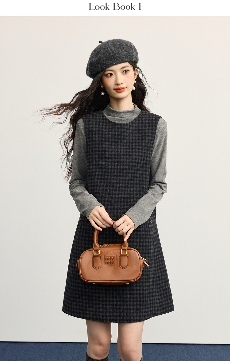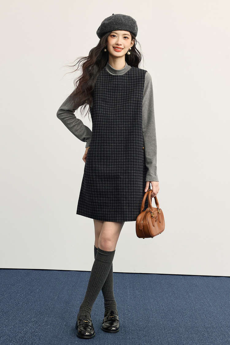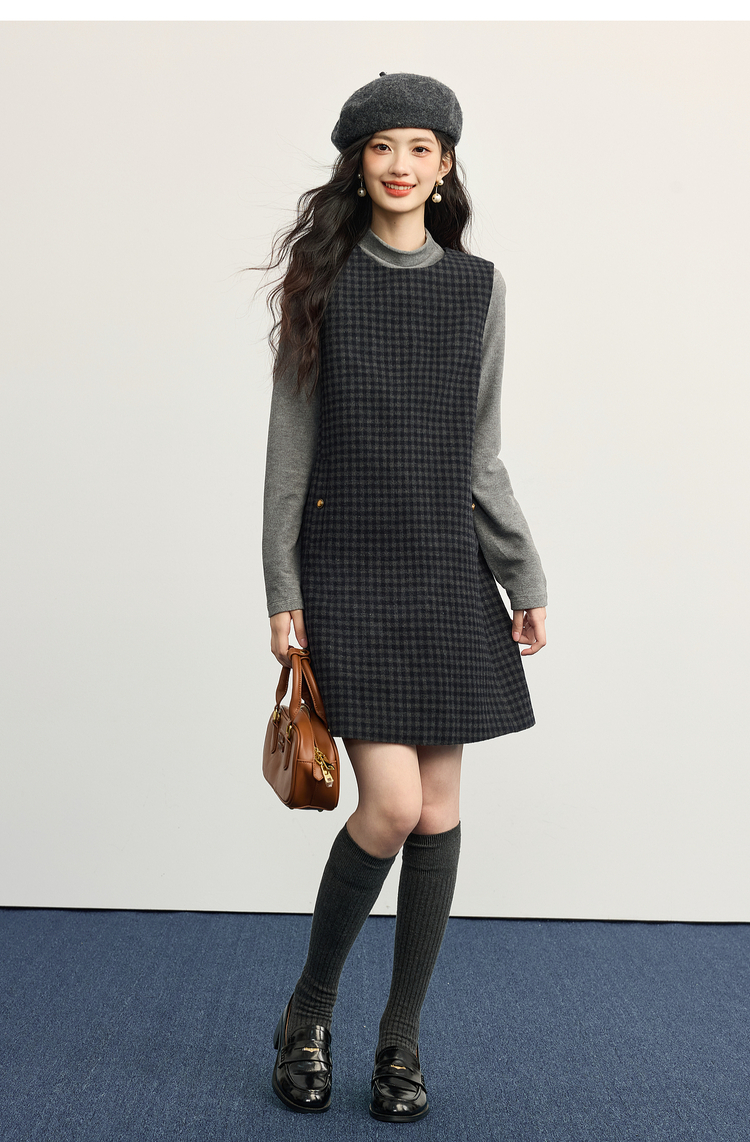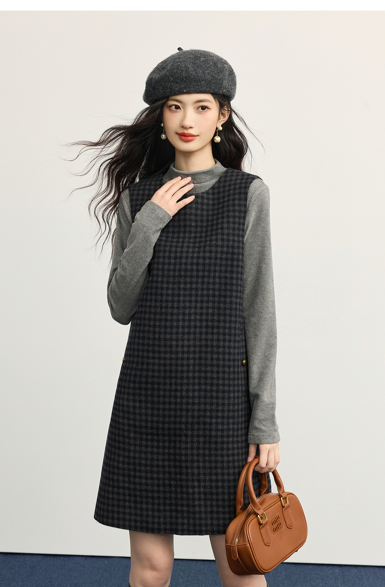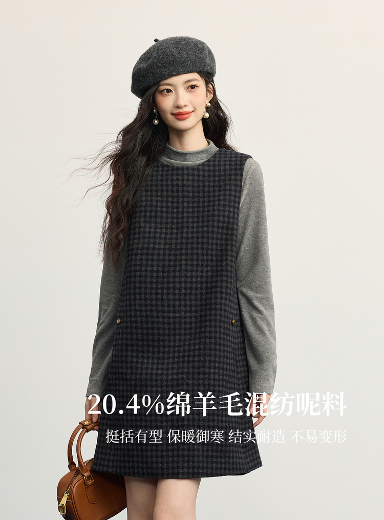 【10/29新品】熙世界千金玛德琳风复古格子背心裙女2025秋冬款无袖羊毛呢连衣裙