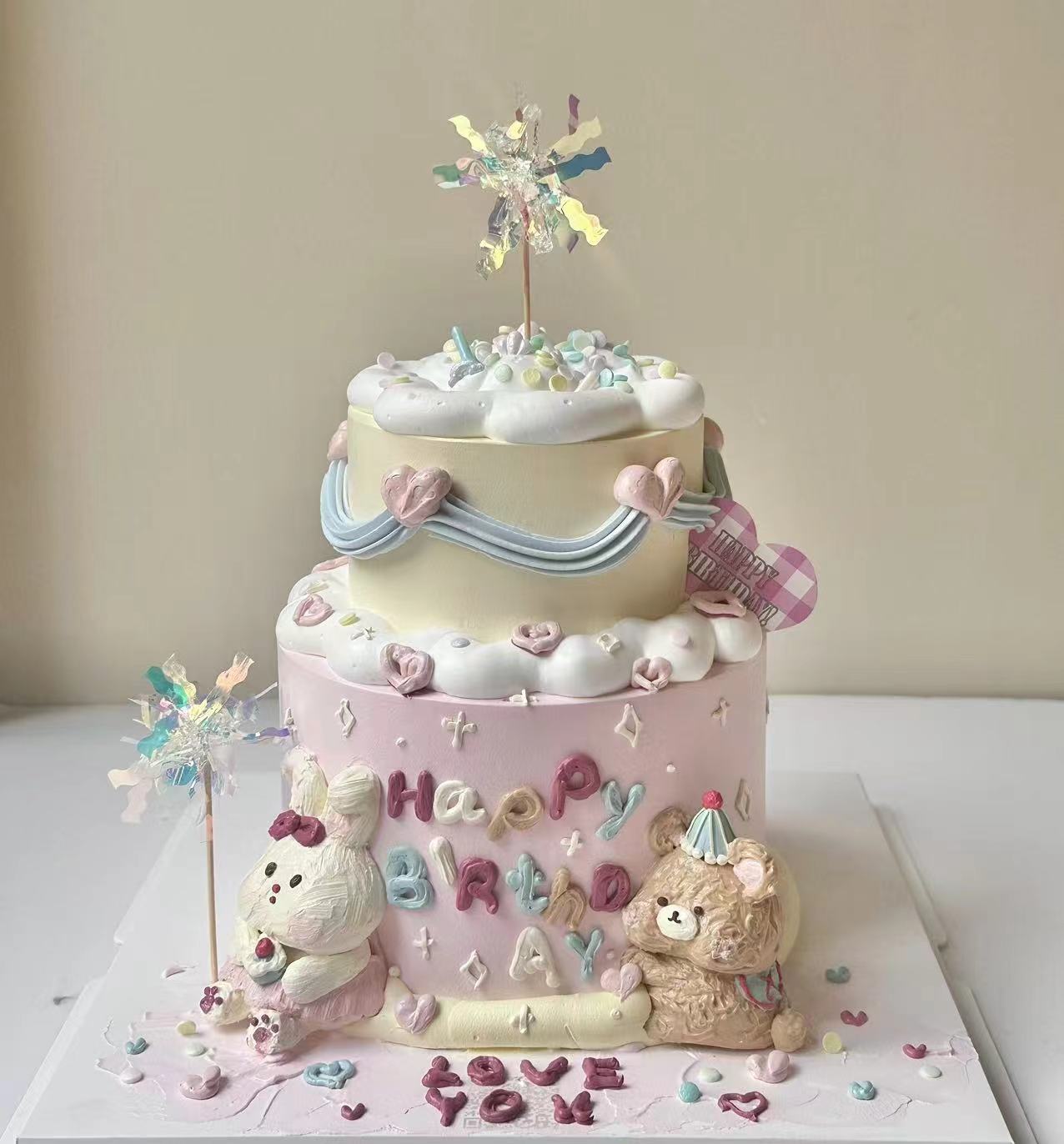 小熊小兔是奶油霜制作,可食用。