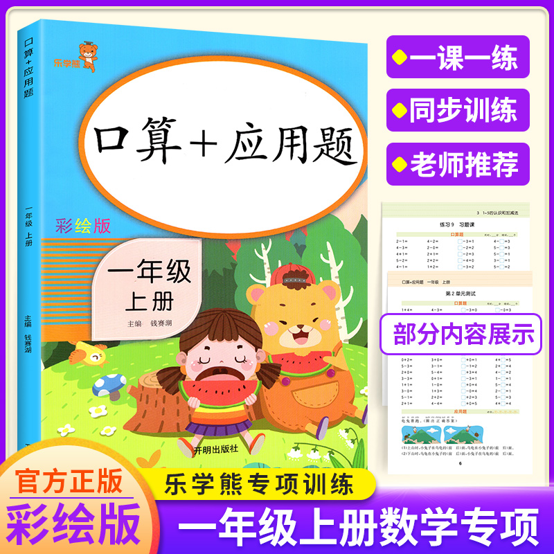 (仓发) 乐学熊 口算+应用题 一年级上册 彩绘版 小学数学口算题卡+应用题强化训练 口算速算天天练习册全横式 小学数学思维训练/开明出版社/9787513153430