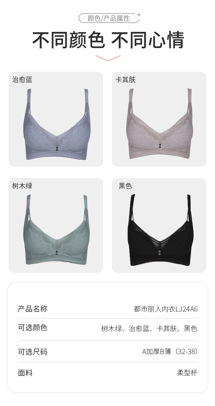 都市丽人少女三步优选AB杯调整型文胸蕾丝A:加厚B:薄3/4杯少女文胸四排扣无钢圈LJ24A6