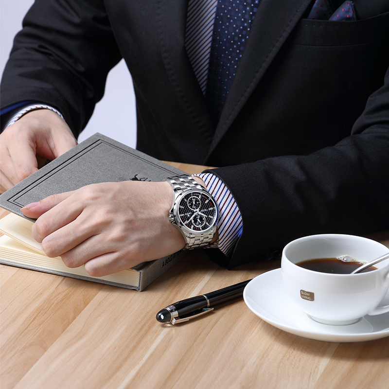依波(EBOHR)日历钢带商务大气简约实心机械男表5101