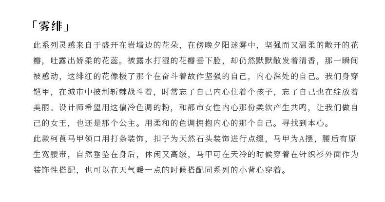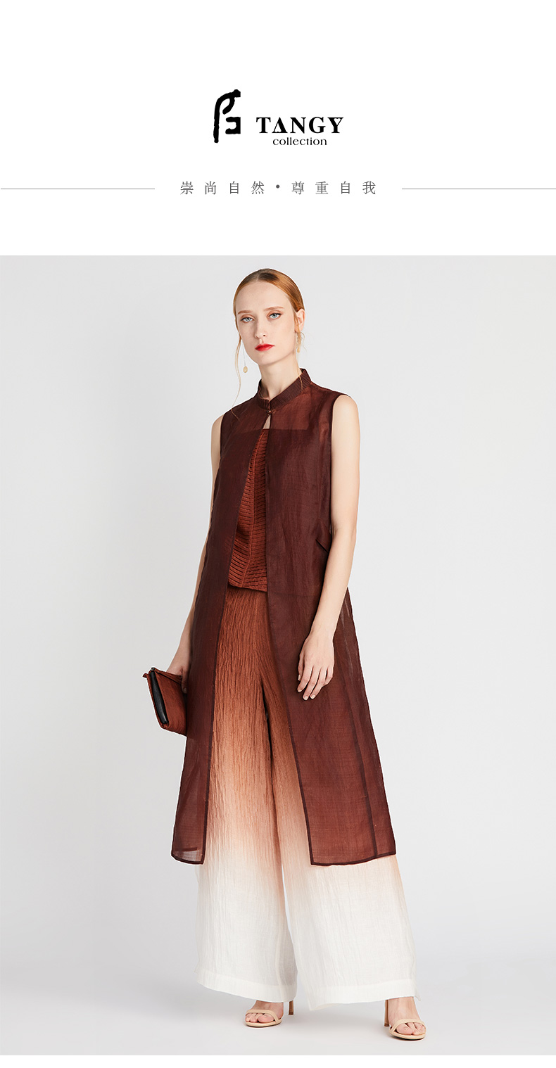 TANGY Collection/天意精品2021年春夏新品雾绯系列莨绸柯纱马甲