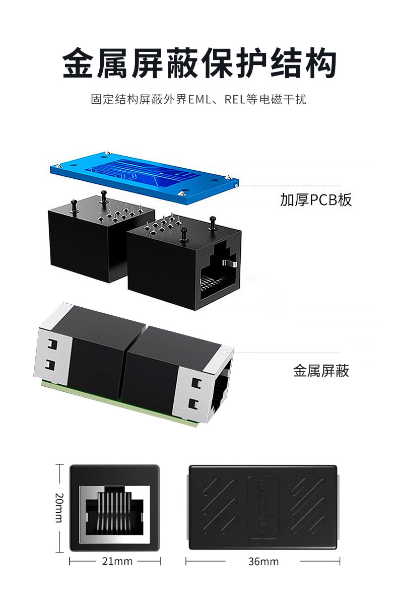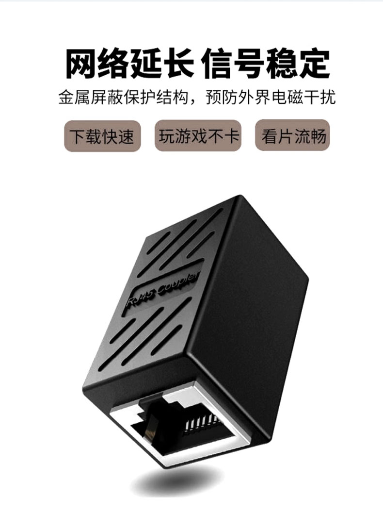 爆款★热销@千兆屏蔽【网线对接头】网络延长连接器 RJ45网口直通头水晶头双通头模块适用6/7类网线 单个 网线轻松延长对接,内置金属屏蔽层,有效低于电磁干扰,延长不衰减,稳定上网不卡顿,即插即用