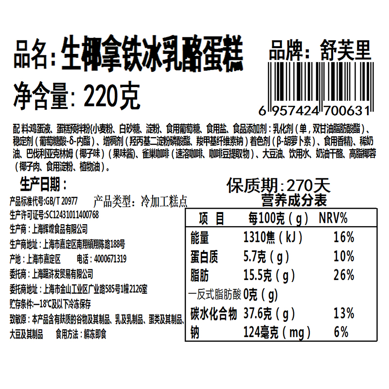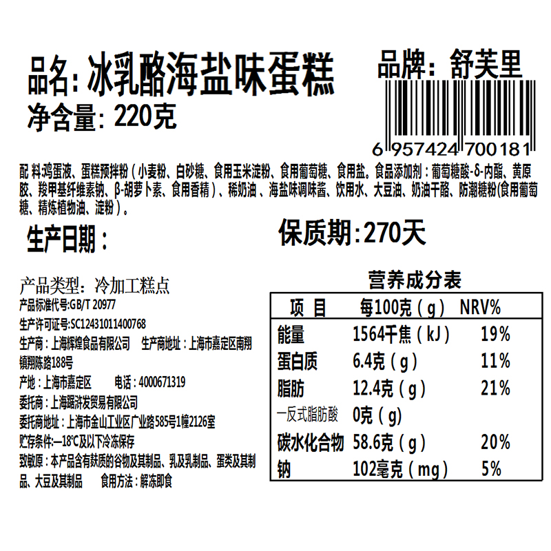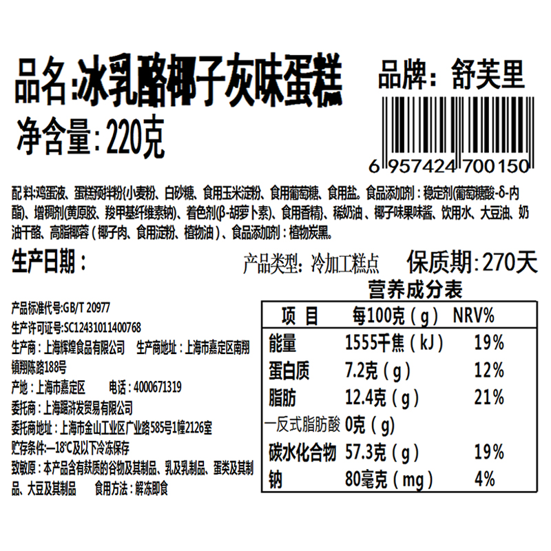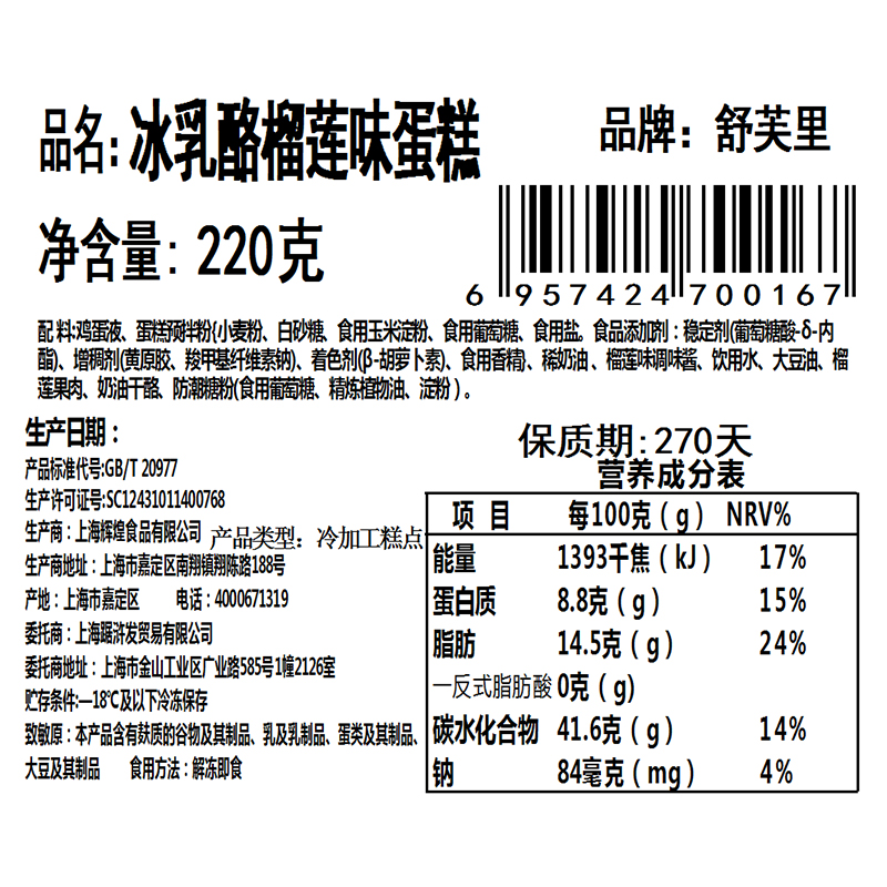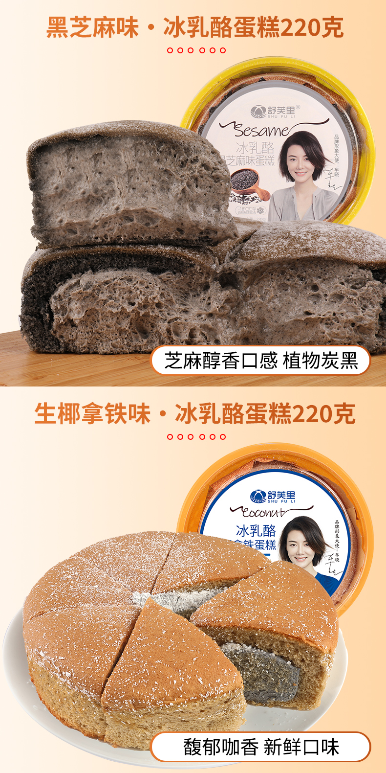 【买1送1】舒芙里冰乳酪戚风蛋糕榴莲味蛋糕黑芝麻 椰子灰 海盐味 6寸吃播同款甜品220克*2盒顺丰包邮网红零食