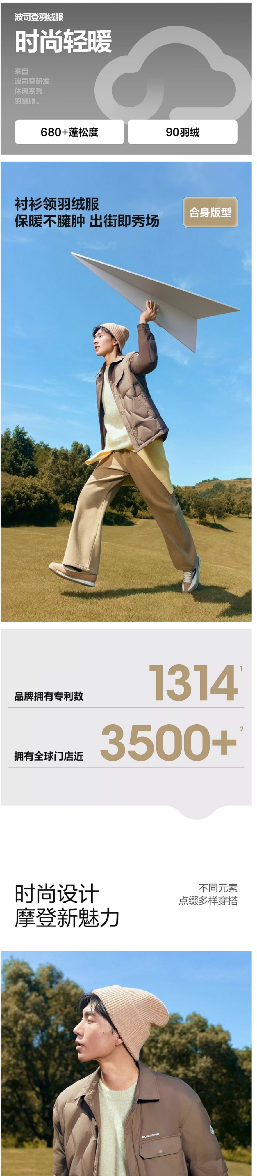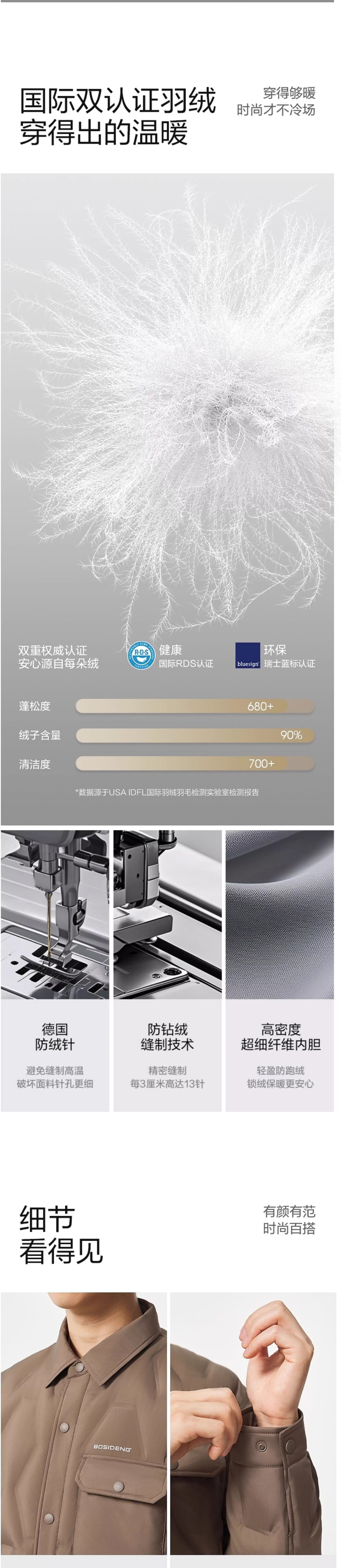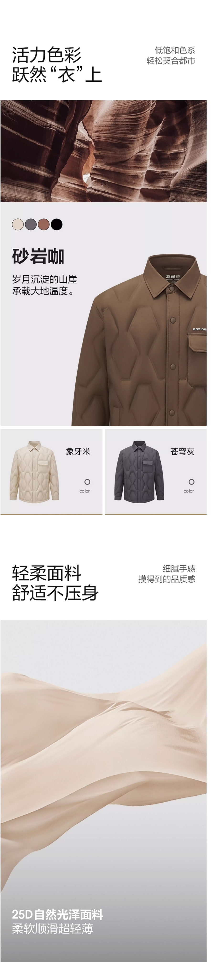 波司登2025秋冬季羽绒服男新款保暖衬衫式翻领轻薄外套B250135319