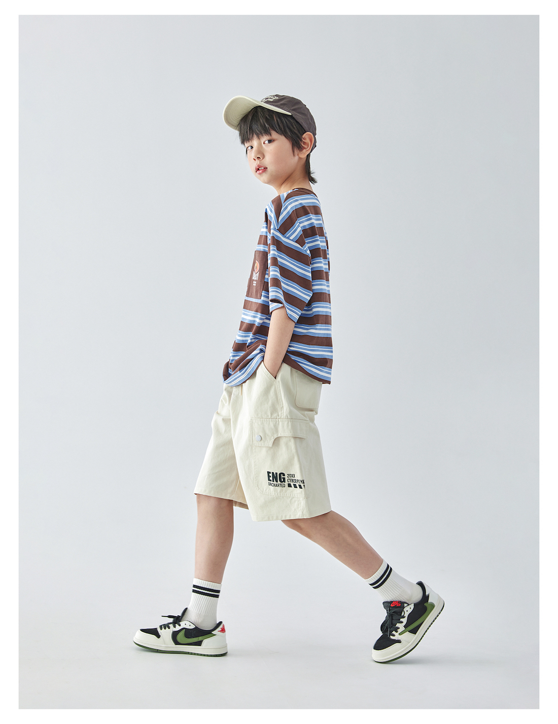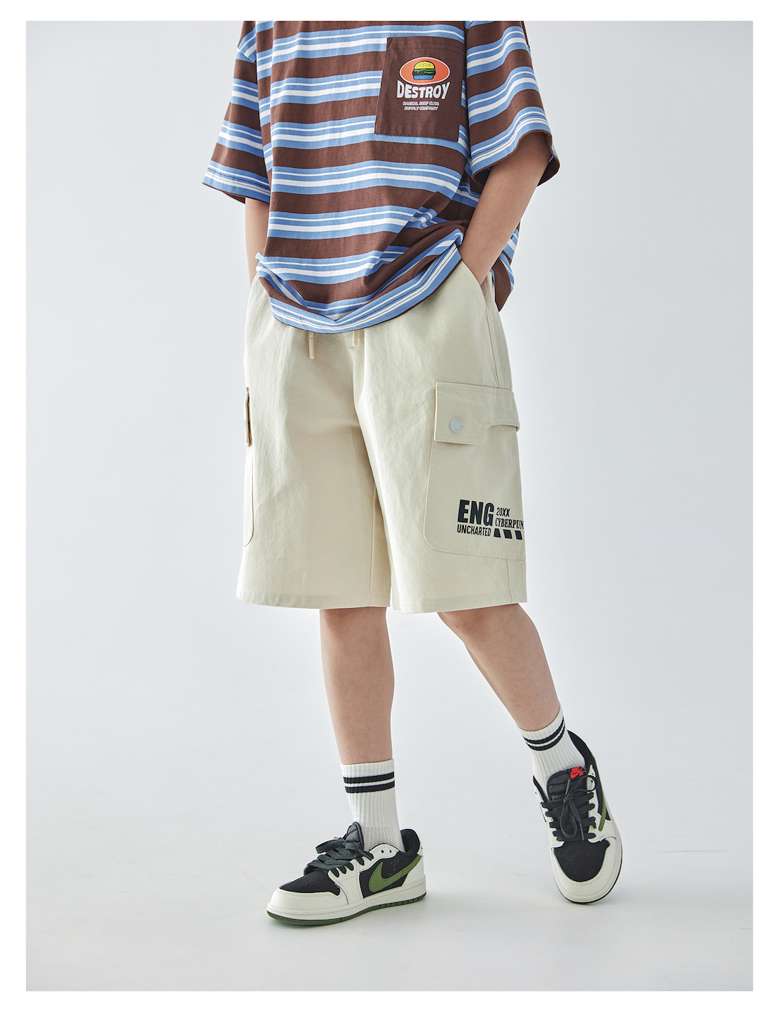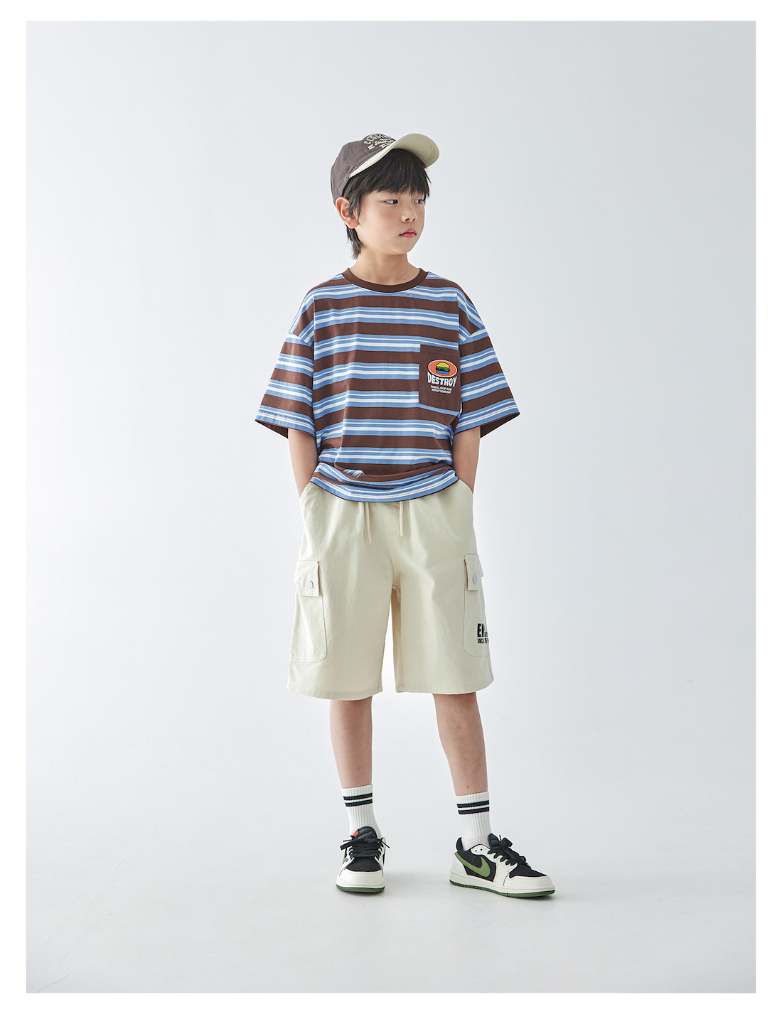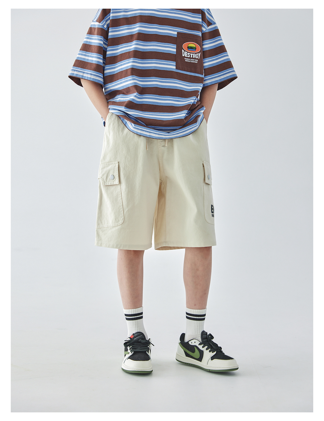 【代发】男款米色大口袋五分裤 蓝汽水夏季斜纹休闲松弛感简约廓形亲子短裤