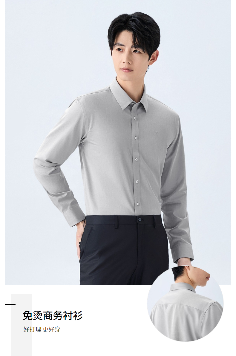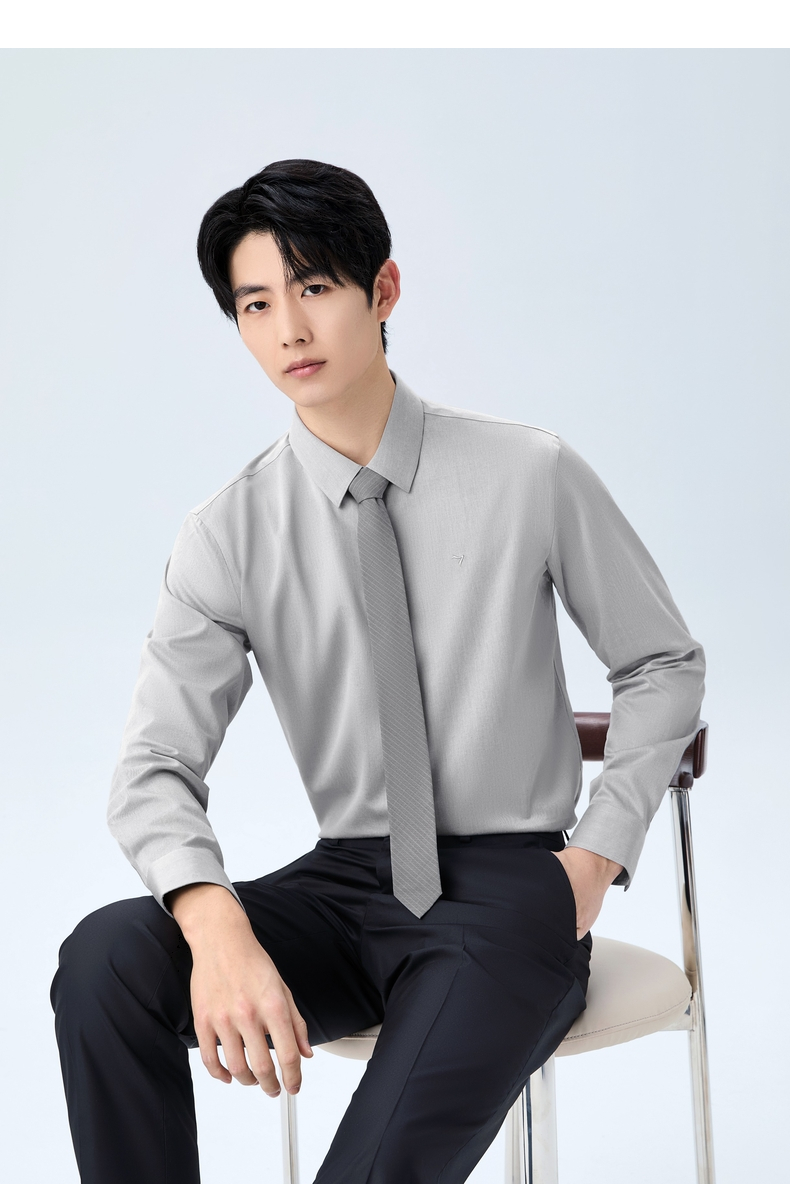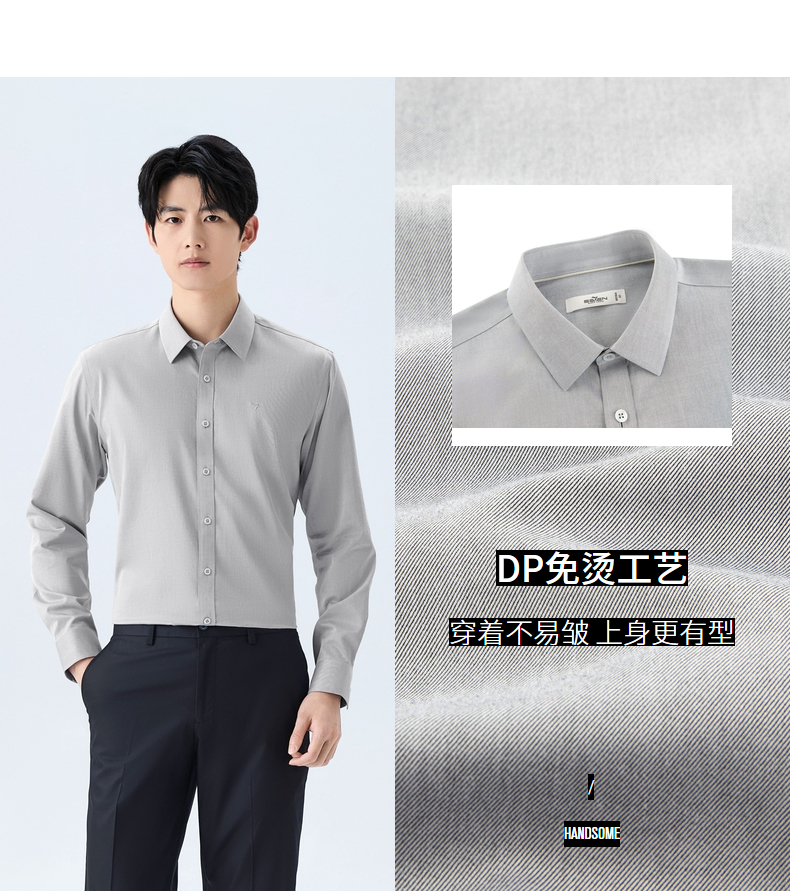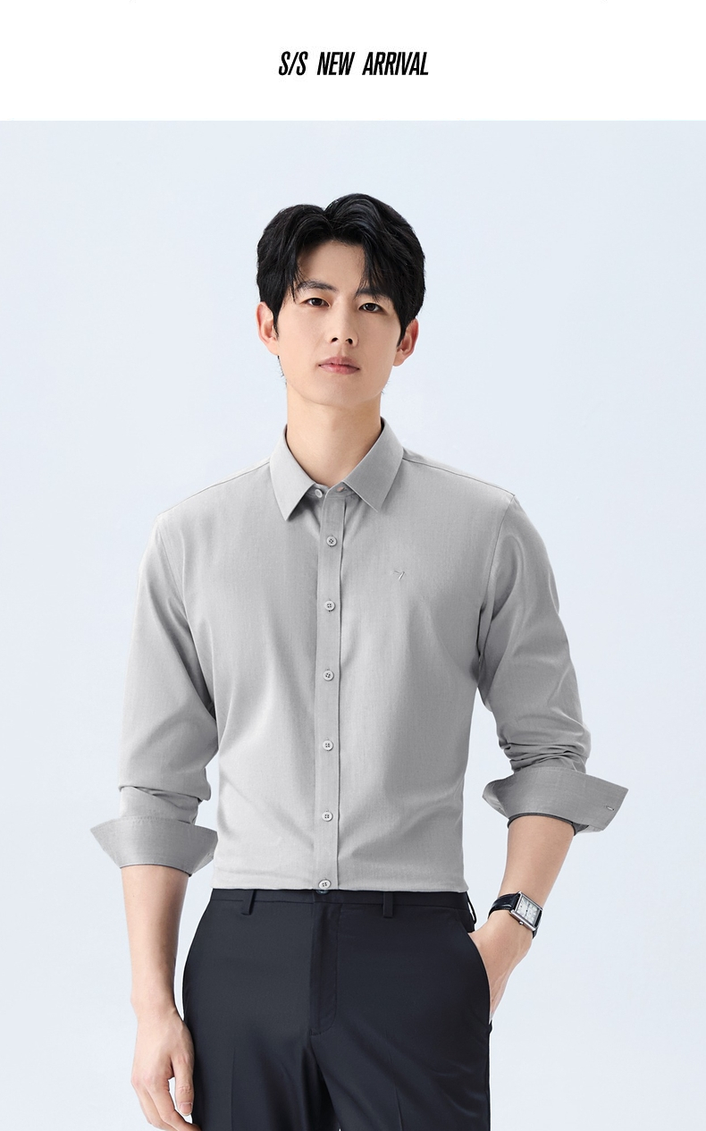 【DP免烫】柒牌男装纯棉翻领2026春季新款商务中青年垂感长袖衬衫 130A70630