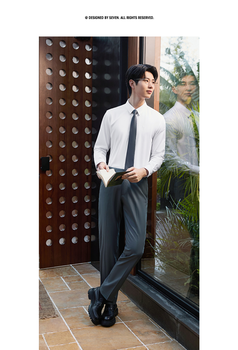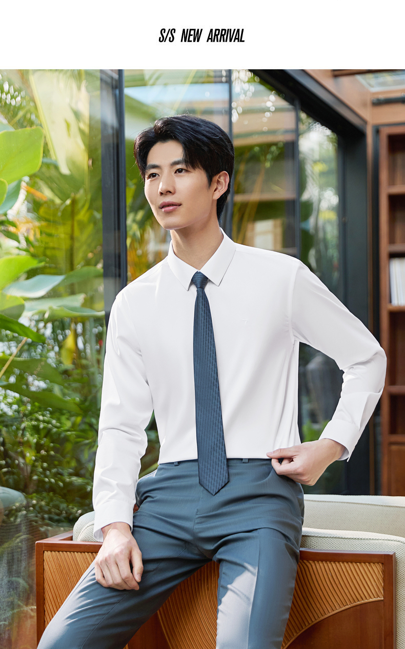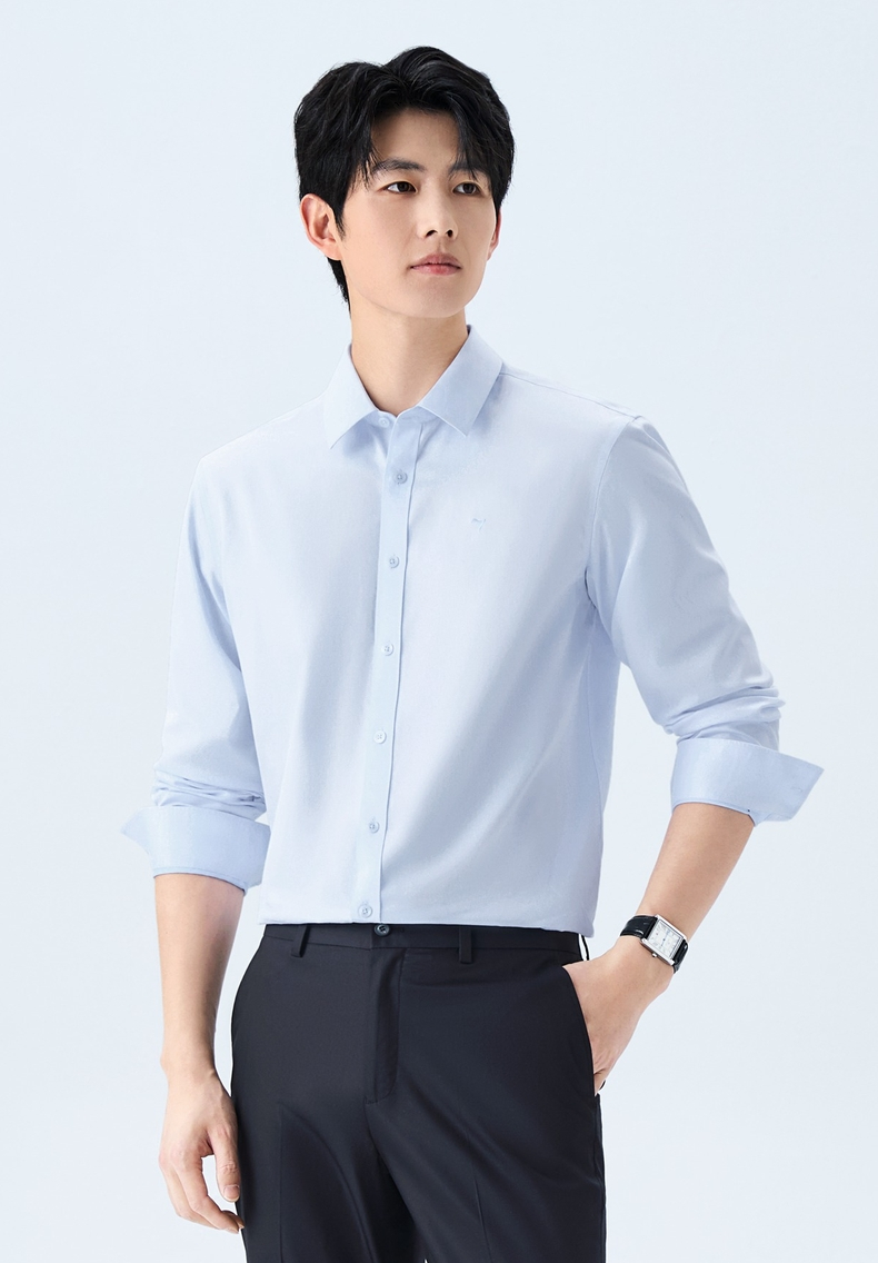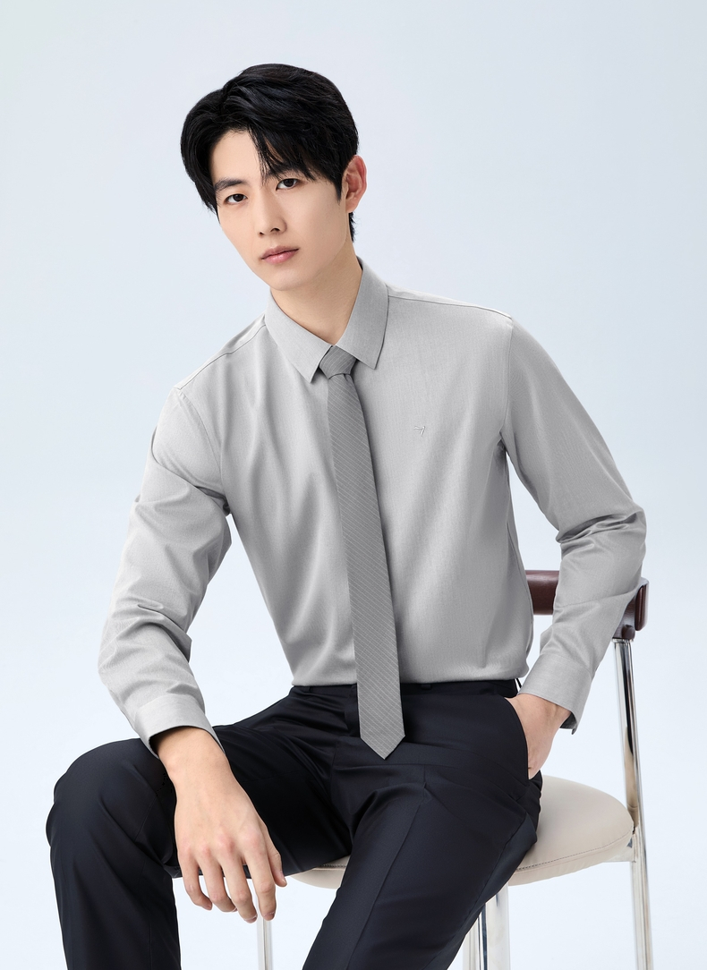 【DP免烫】柒牌男装纯棉翻领2026春季新款商务中青年垂感长袖衬衫 130A70630