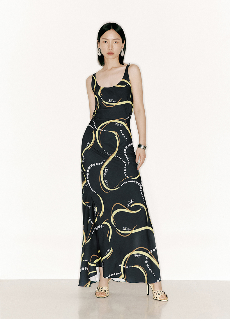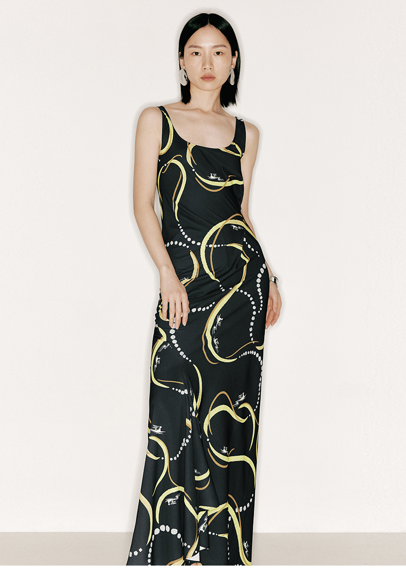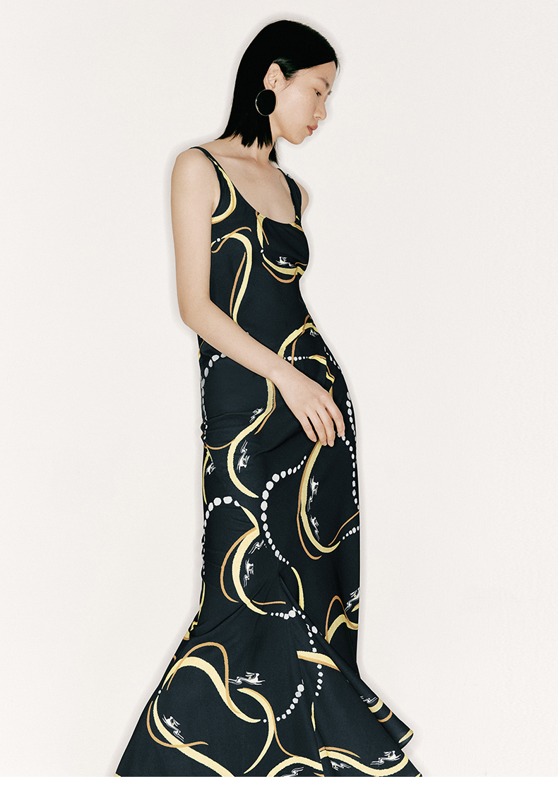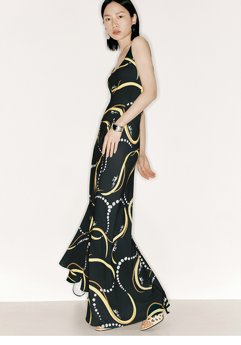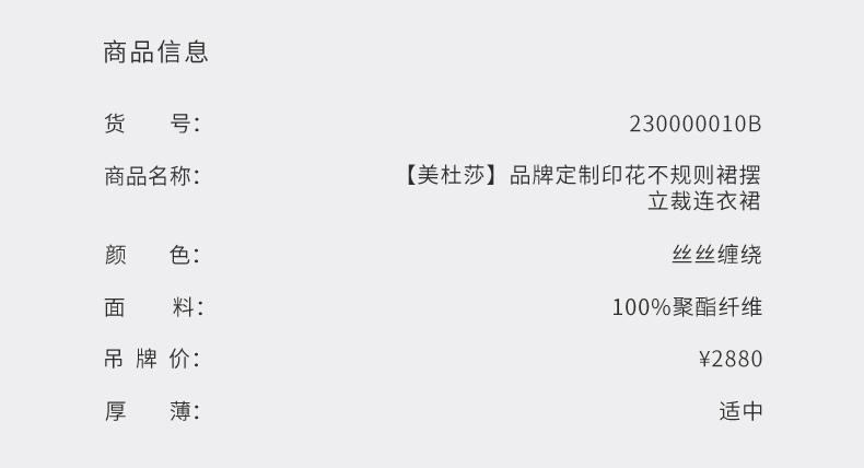 【美杜莎】品牌定制印花不规则裙摆立裁连衣裙/230000010B
