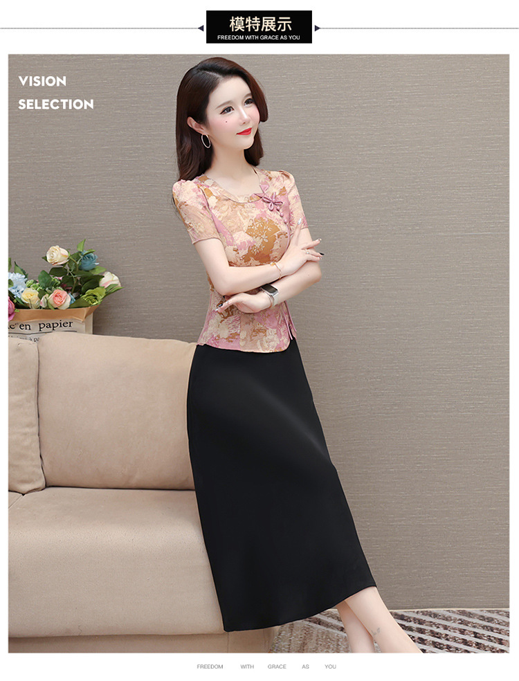 时尚气质拼结,假两件中长款短袖裙QYM-KED-H1919 -Y