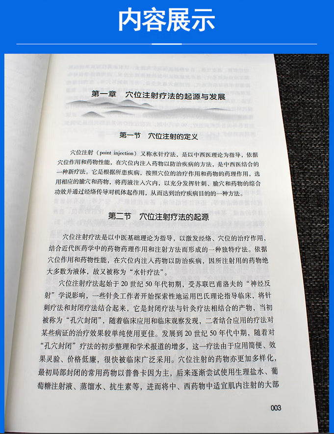 本书简要介绍了穴位注射疗法的基础知识,重点阐述了穴位注射治疗骨科常见疾病的方法,包括常用穴位的选择,穴位注射药物的配制,操作方法,药物注射剂量、治疗疗程和效果的分析等。其内容丰富,方法科学实用,可操作性强,临床治疗效果明显,安全性高。可供基层医务人员、在校医学生及患者阅读参考。