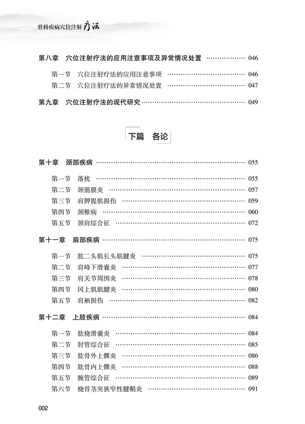 骨科疾病是常见病、多发病。朱瑜琪主任作为骨科主任和我社的优秀签约作者,在骨科疾病治疗上面有很多实战经验和很好的疗效,这本书诠释了这个穴位注射疗法的学术价值,还具有很强的实用性,对广大医务工作者和读者能够提供很好的指导。