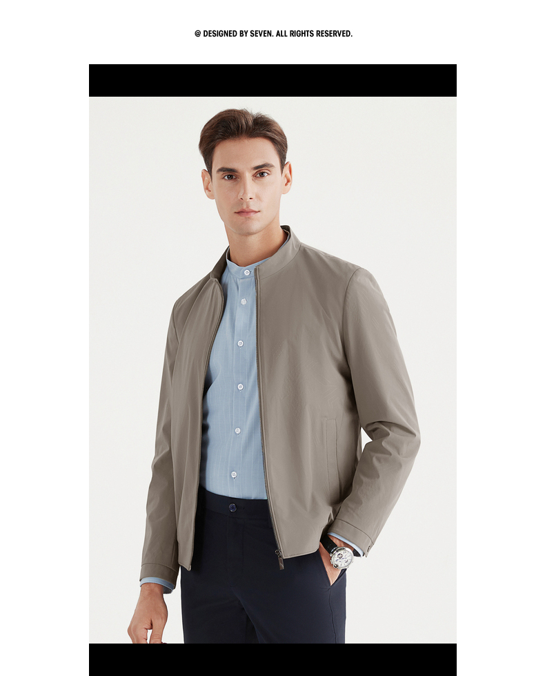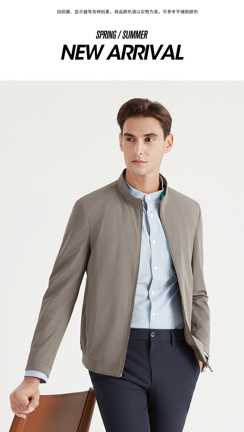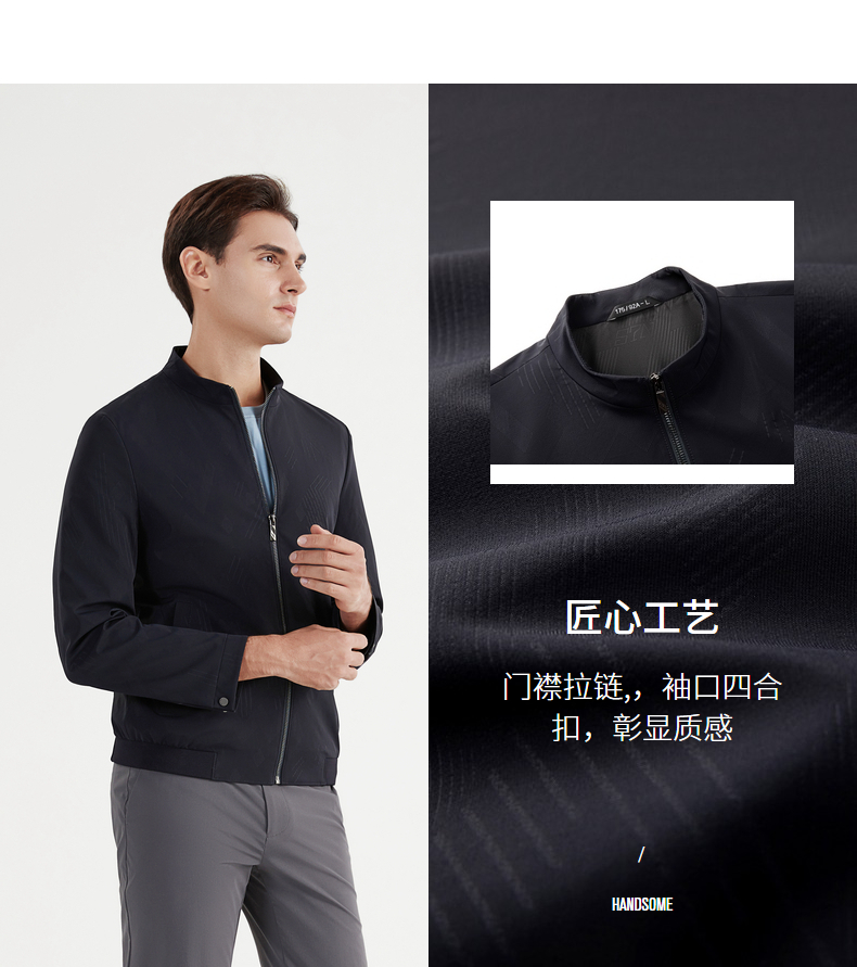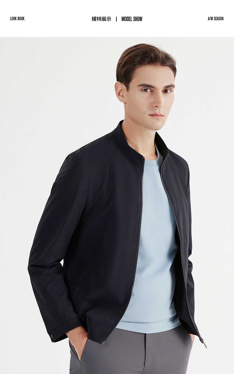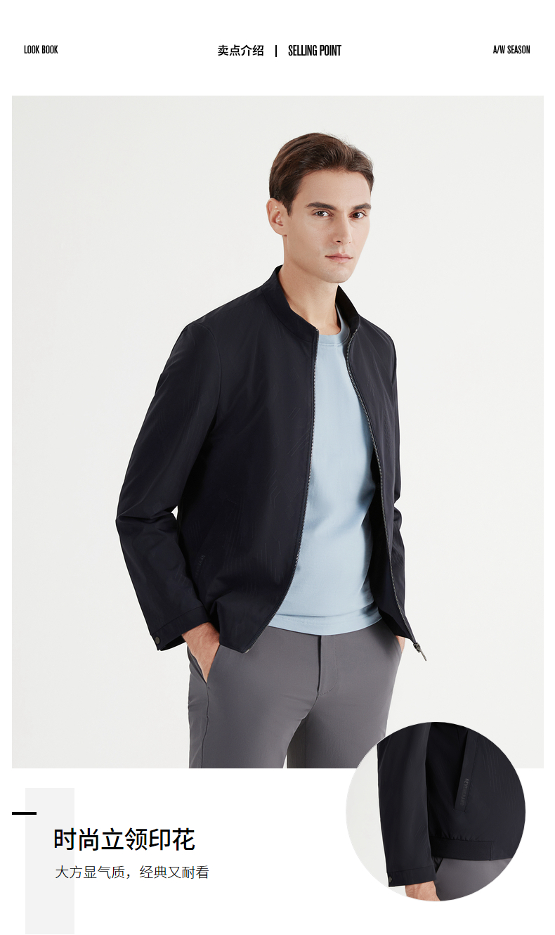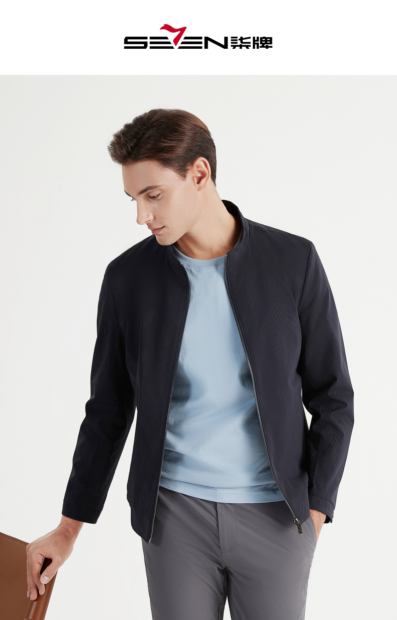 【特价】柒牌夹克男春秋季新款立领商务休闲长袖中青年印花外套夹克衫 122K70160