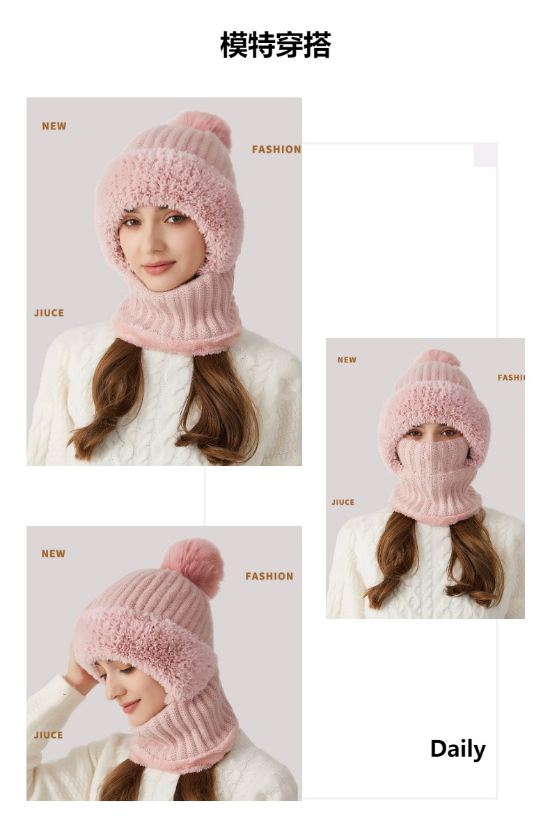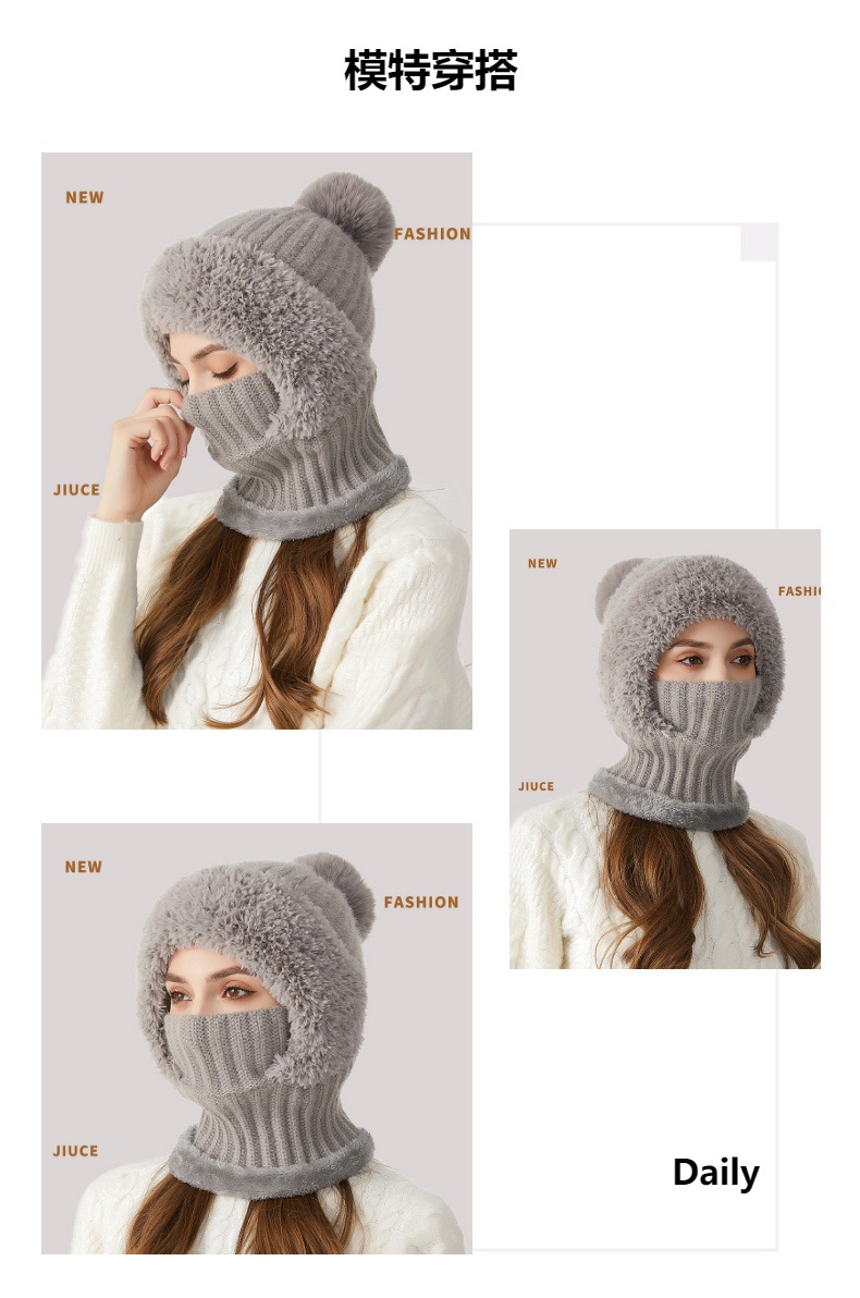 针织帽加厚加绒围脖口罩连体保暖帽JC2758
