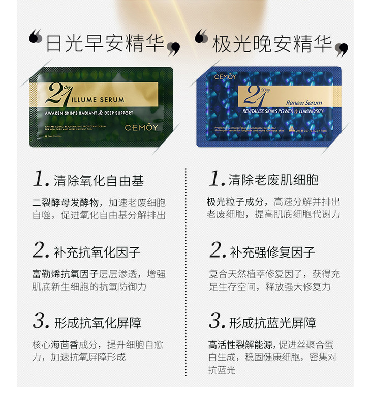 【一般贸易】澳大利亚cemoy21天早安精华跟晚安精华组合装2ml*21袋