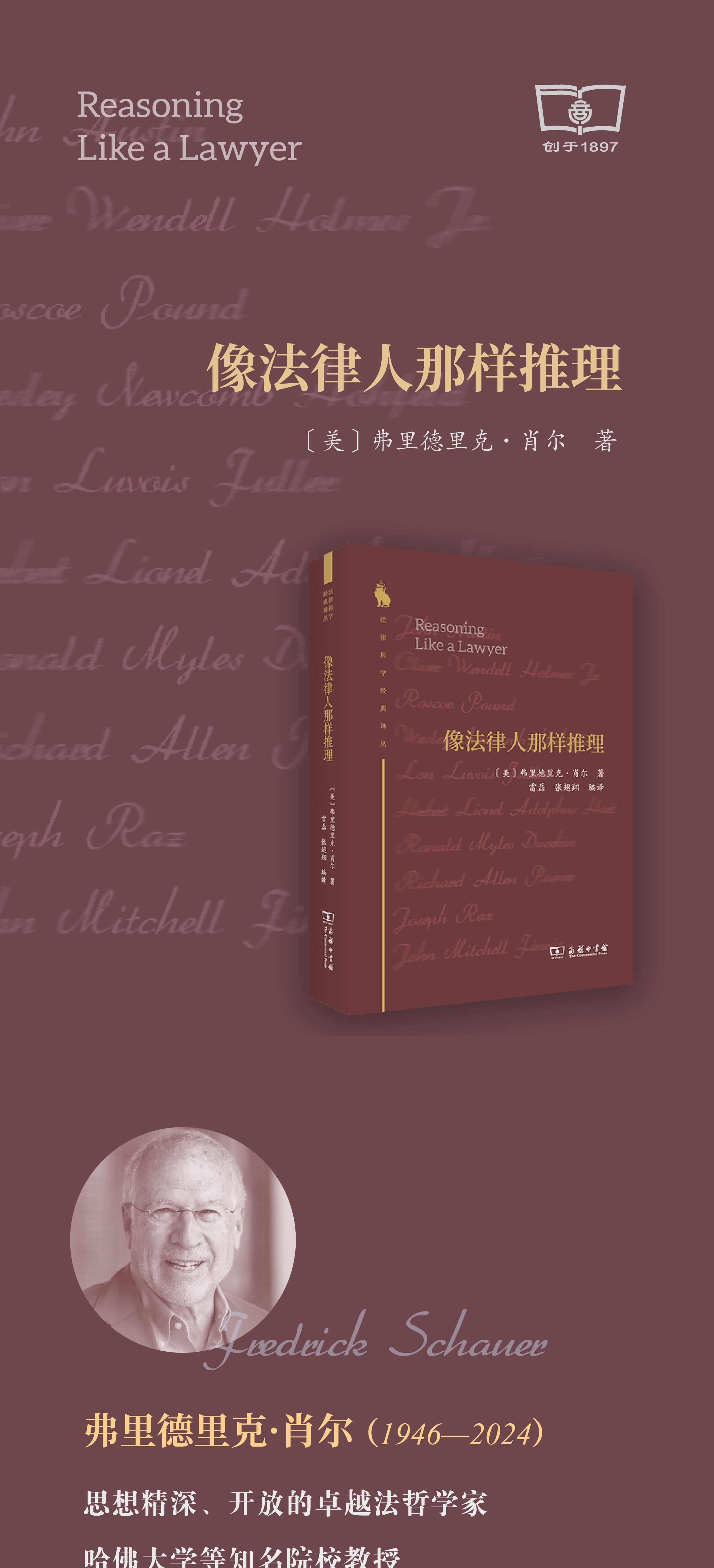 弗里德里克·肖尔(Fredrick Schauer,1946—2024),美国弗吉尼亚大学法学院前大卫与玛丽·哈里森讲席杰出教授,英国科学院院士和美国艺术与科学学院院士。曾执教于密歇根大学法学院和哈佛大学肯尼迪政府学院。著有《依规则游戏》(1991)、《像法律人那样思考》(2009)和《法律的强制力》(2015)等作品以及大量论文。
