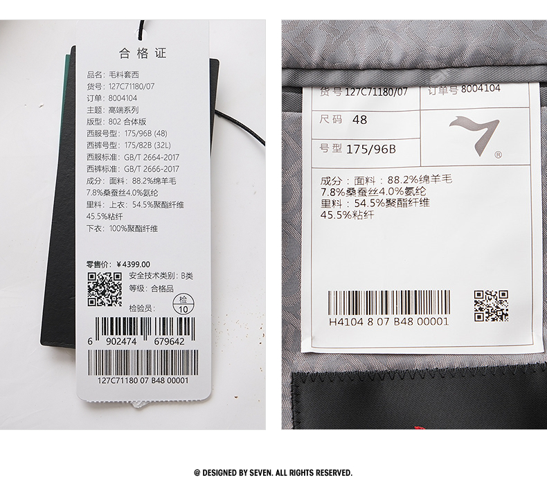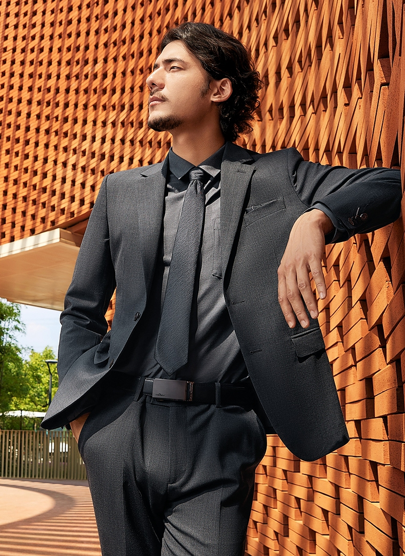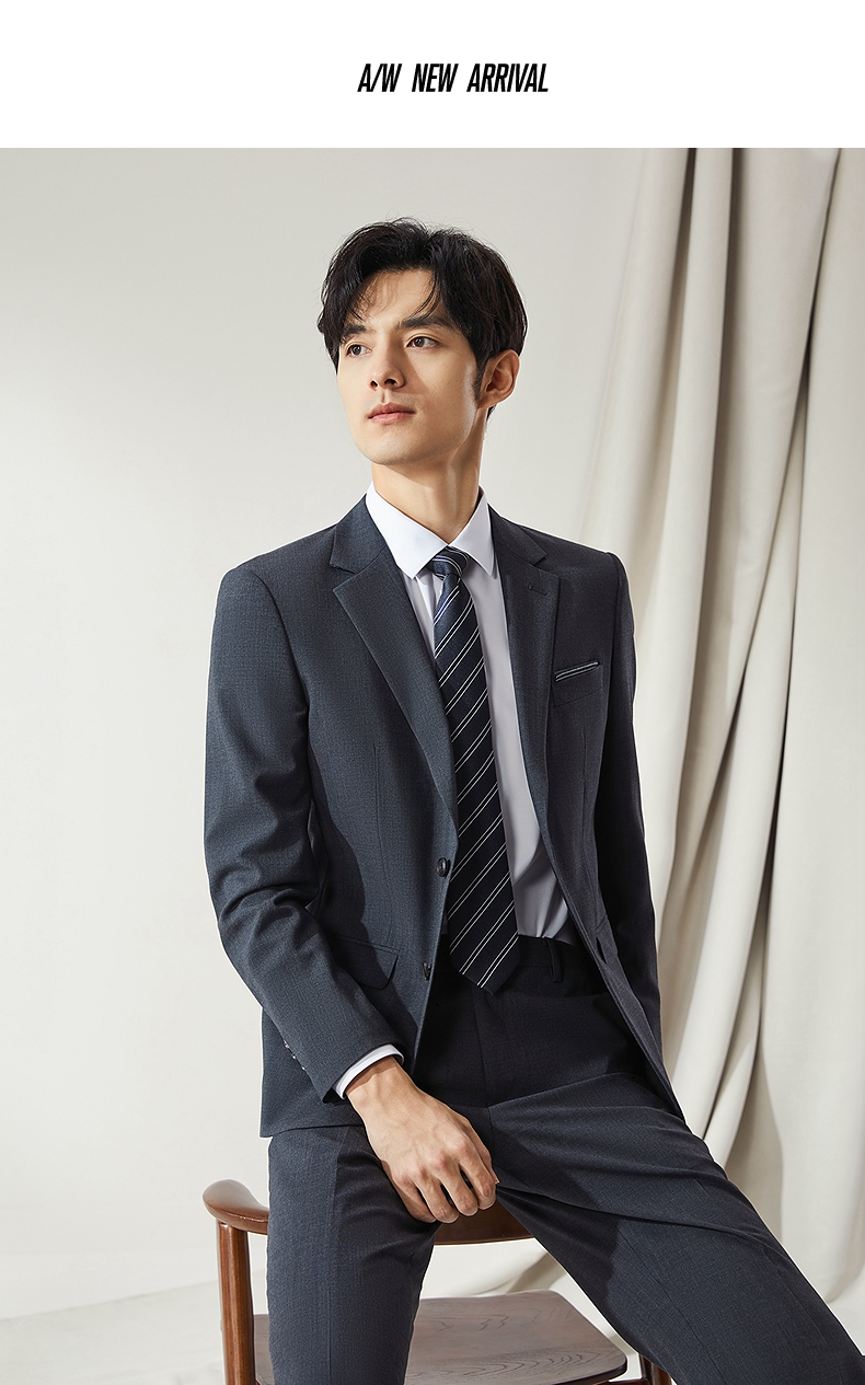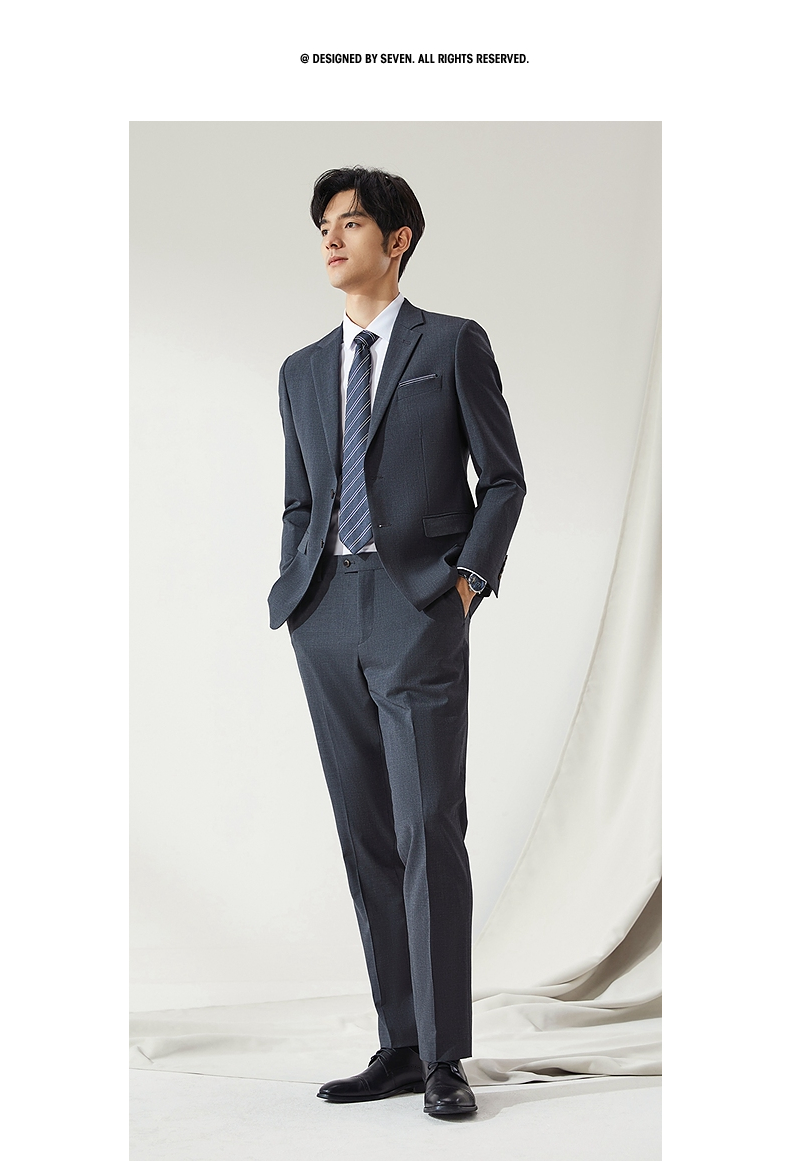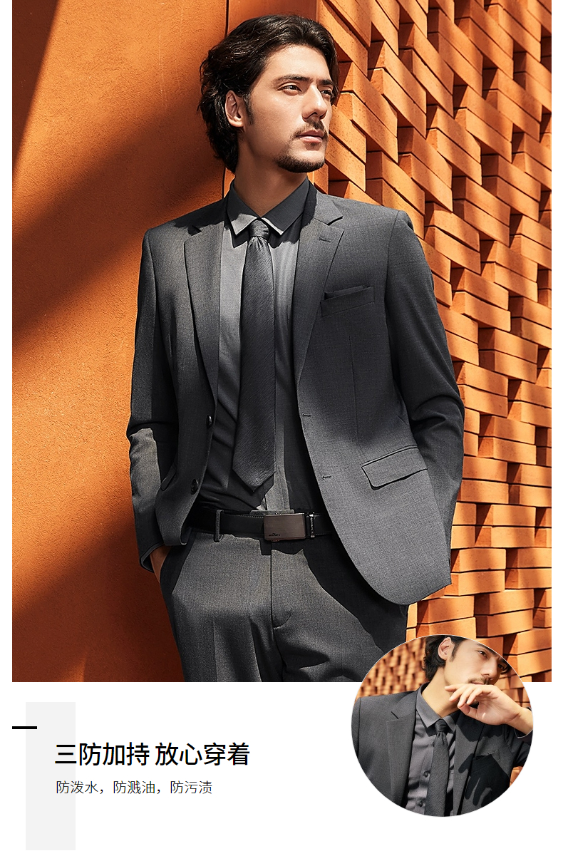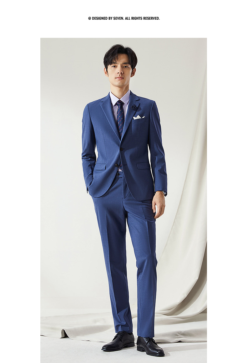 【婚礼季/WoolMark】柒牌西装男套装2025秋冬新款商务正装含羊毛三防西服 127C71180
