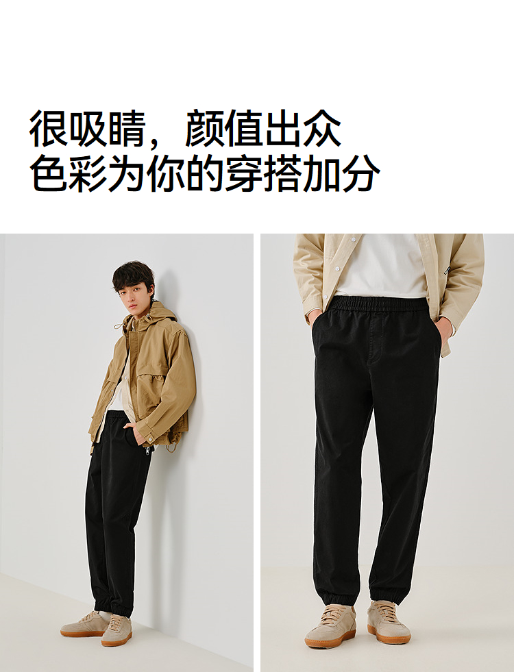 森马休闲裤男款纯色锥形裤磨毛小脚裤子通勤基础百搭春季长裤青年