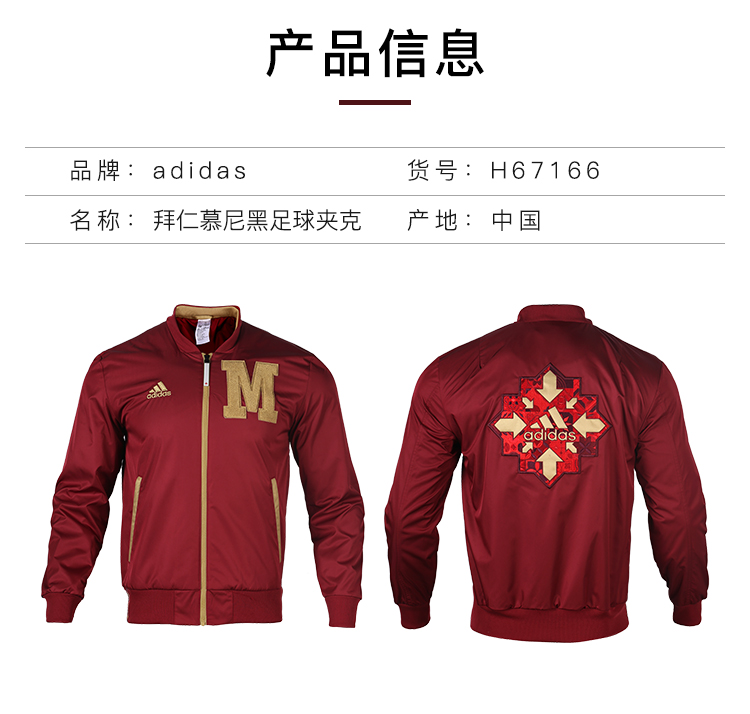 ADIDAS/阿迪达斯 FCB LNY BOMBER 拜仁慕尼黑足球运动夹克成人男H67166