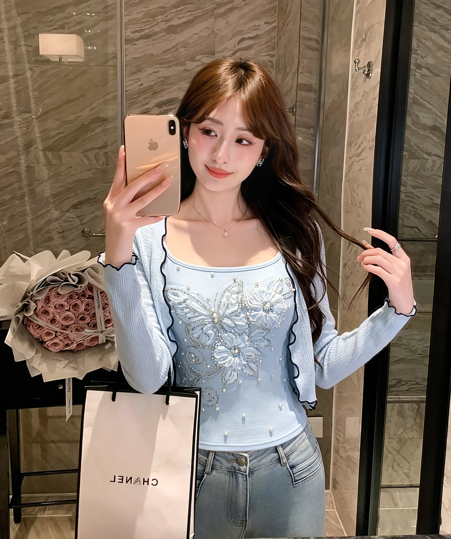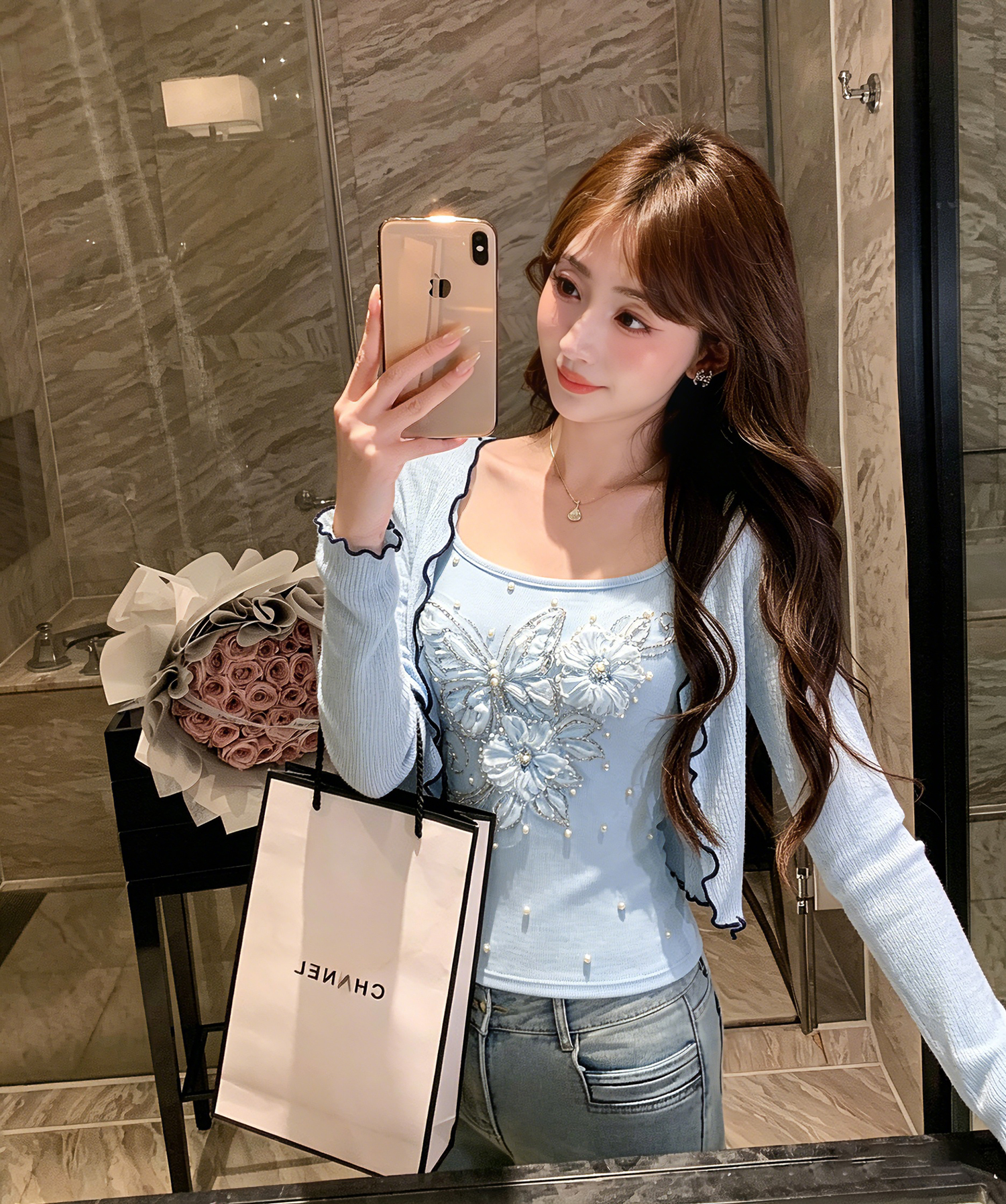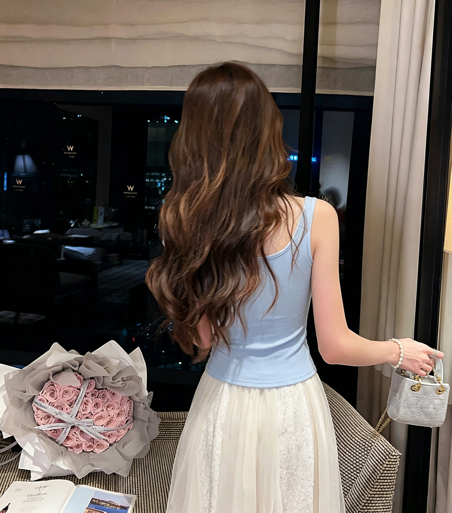 张心子【巴厘岛度假】方领显瘦度假风贝壳链条针织上衣 U2603007