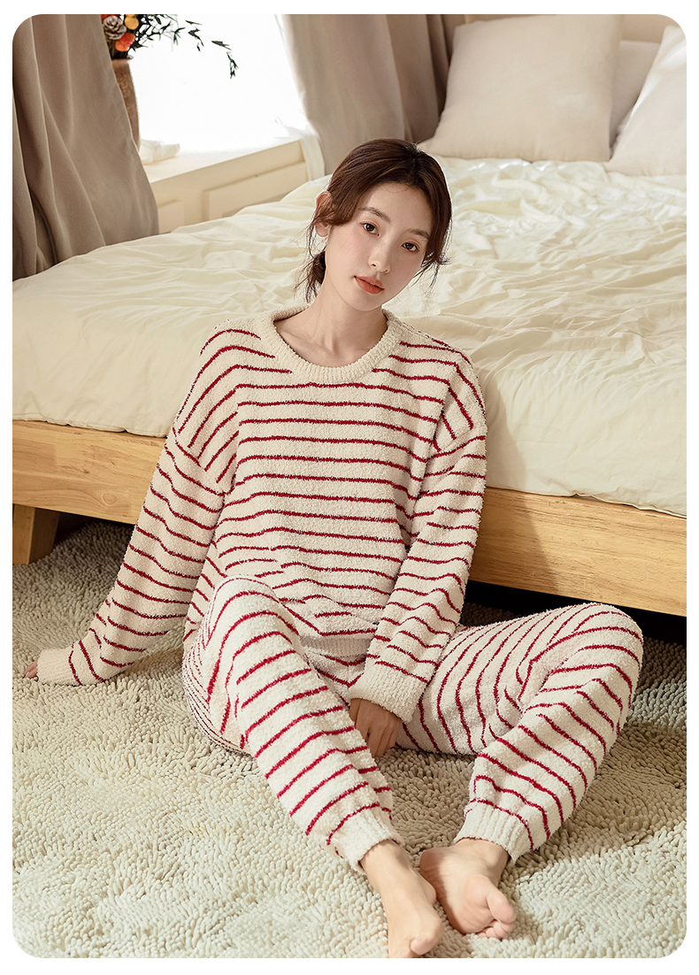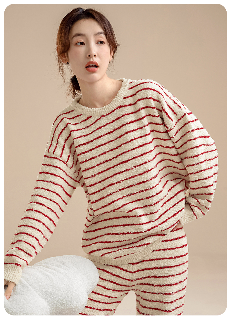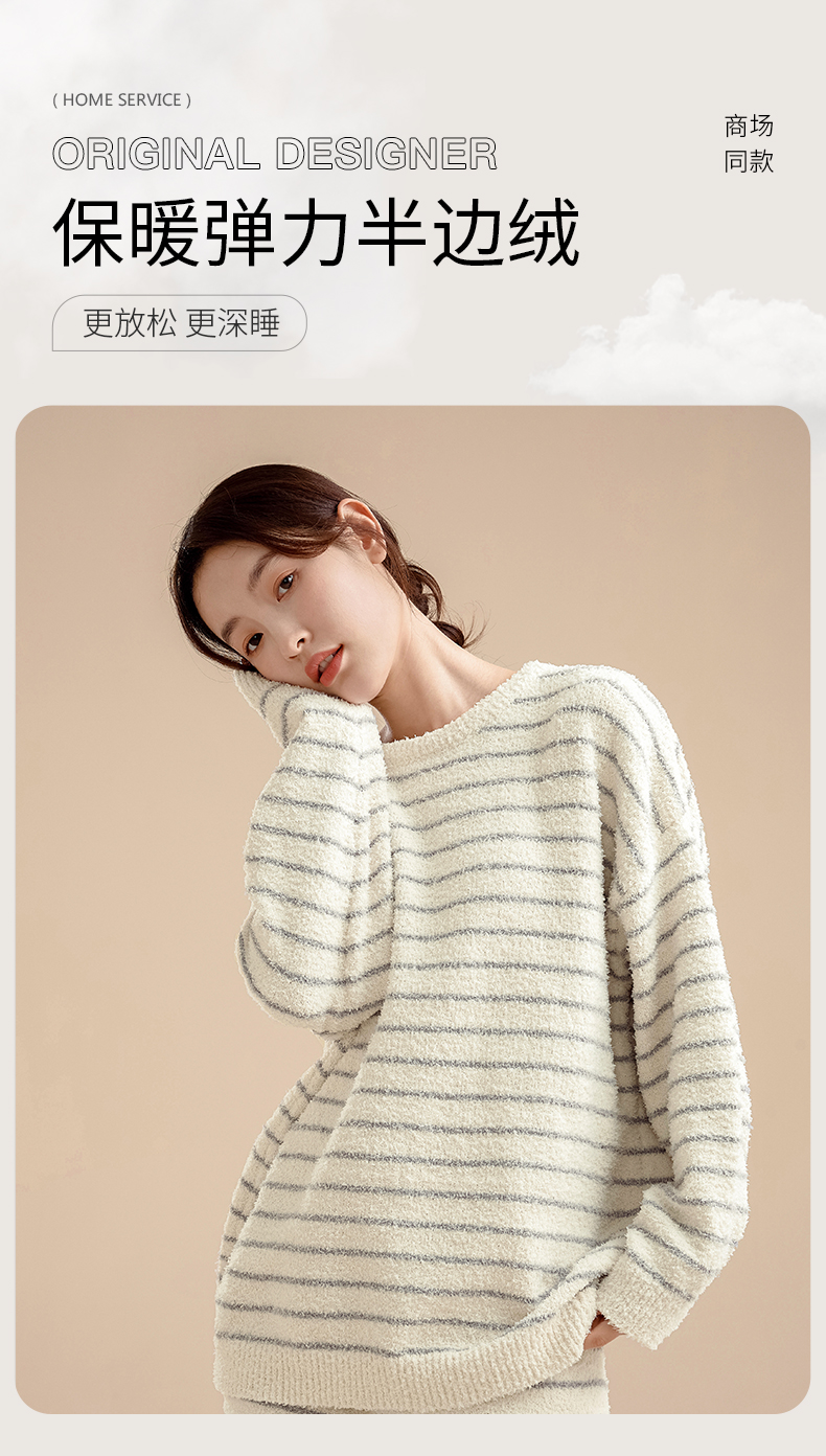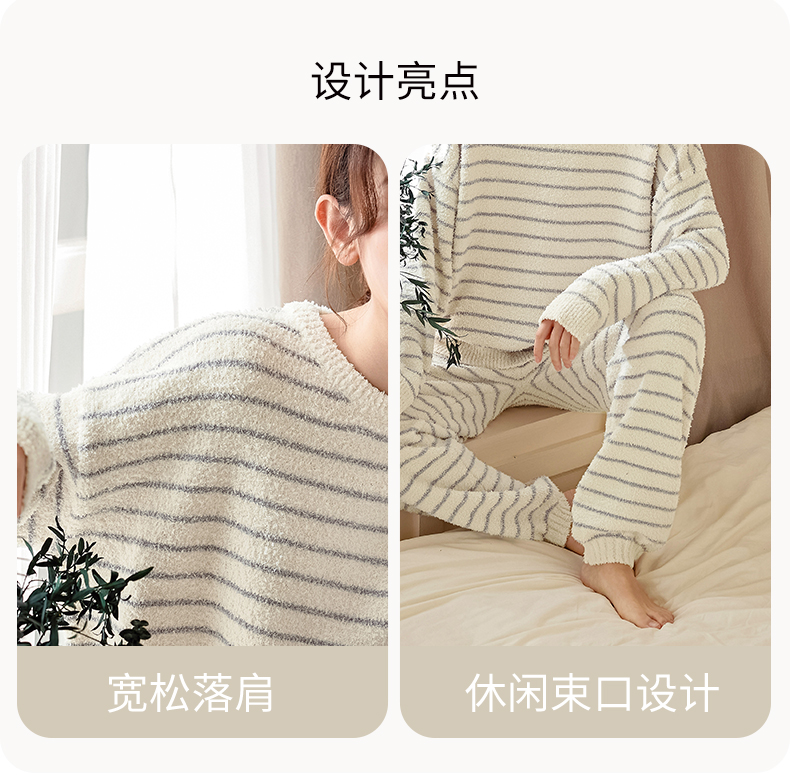 (合作款)内茵带胸垫双沿条撞色家居服套装