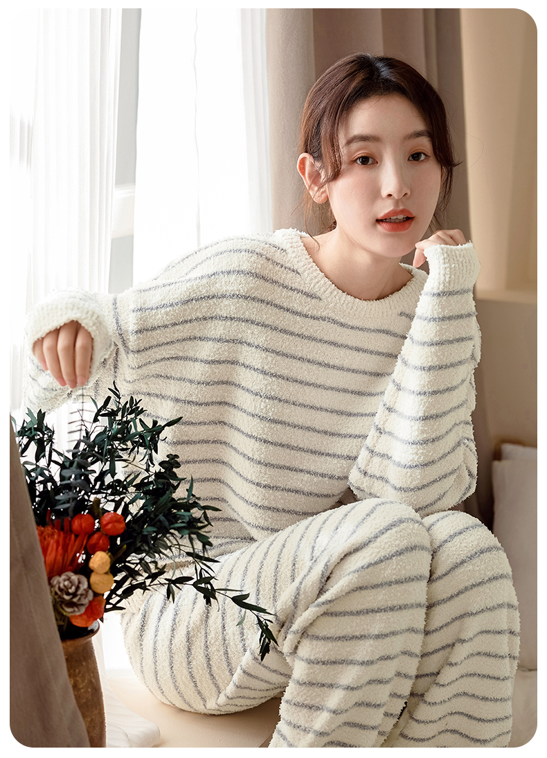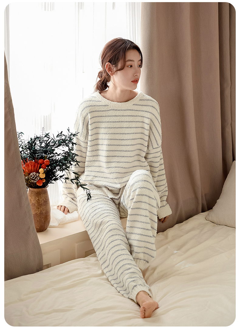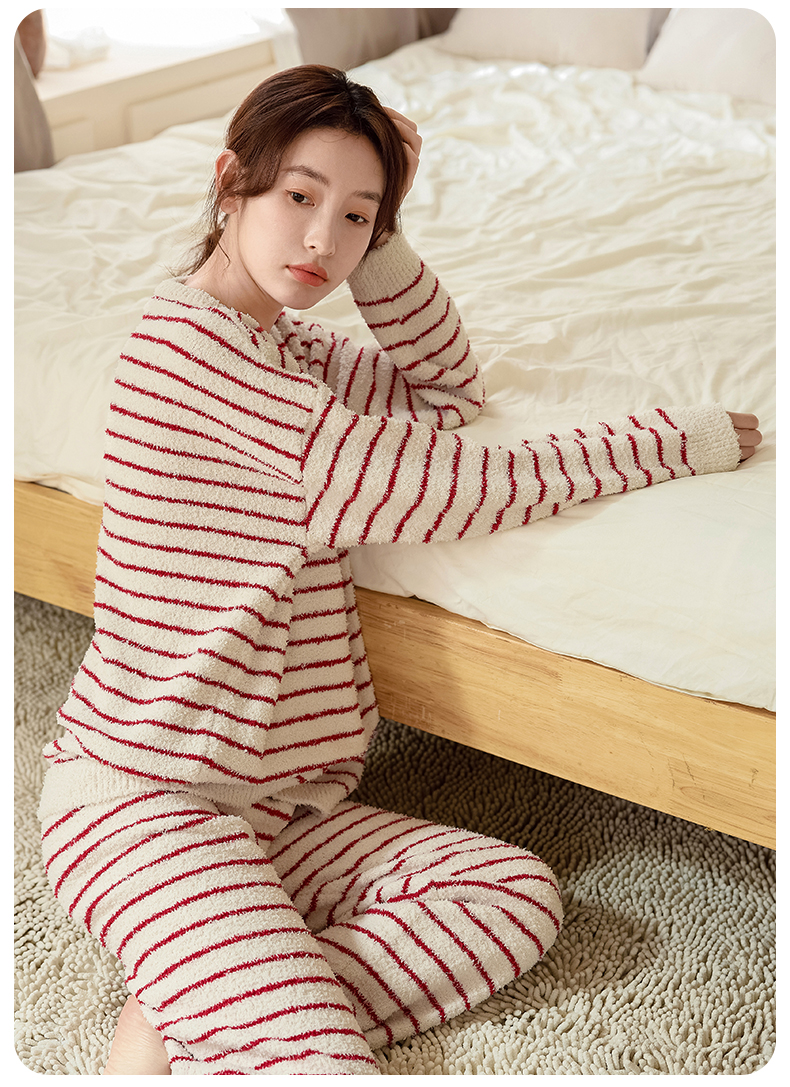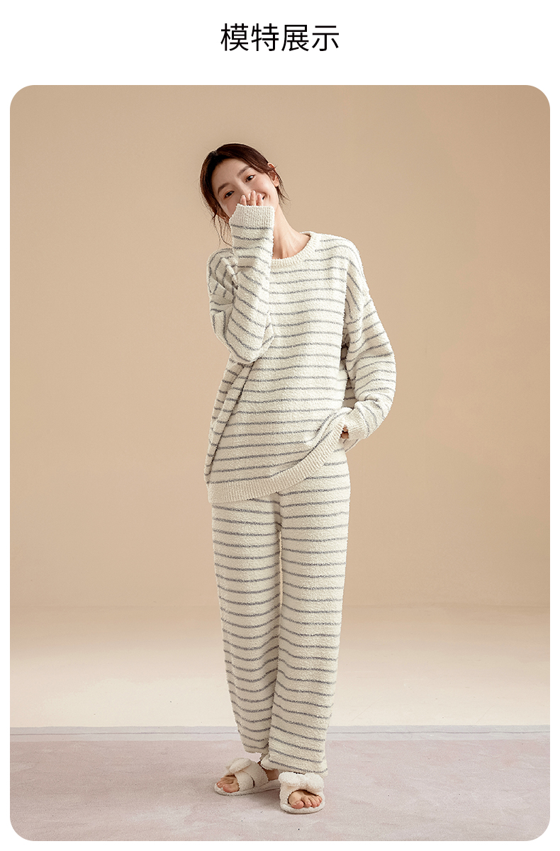 (合作款)内茵带胸垫双沿条撞色家居服套装