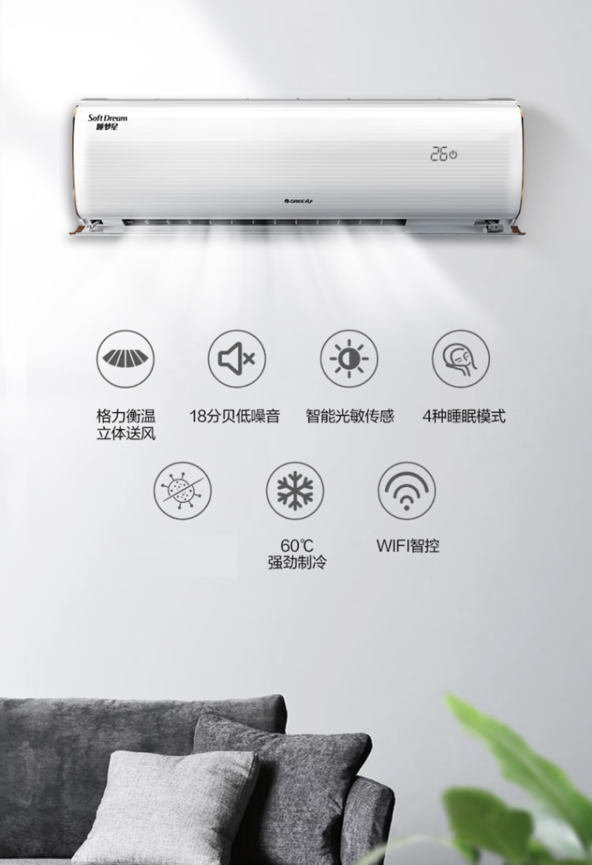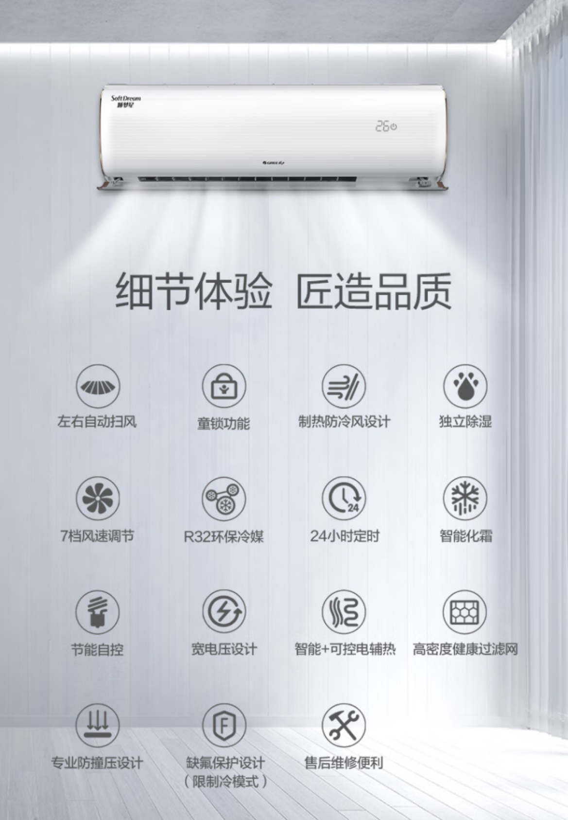 格力(GREE)空调 KFR-35GW/(35599)FNhBa -B1 (皓雪白) 睡梦星