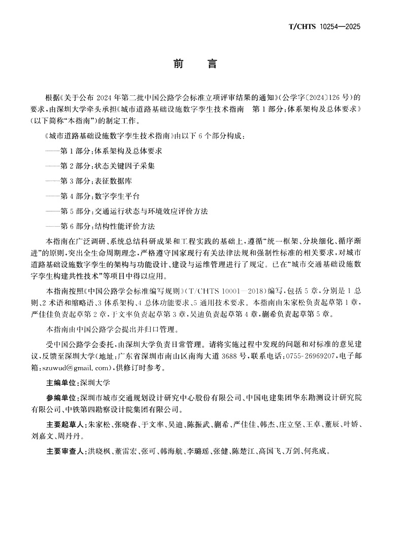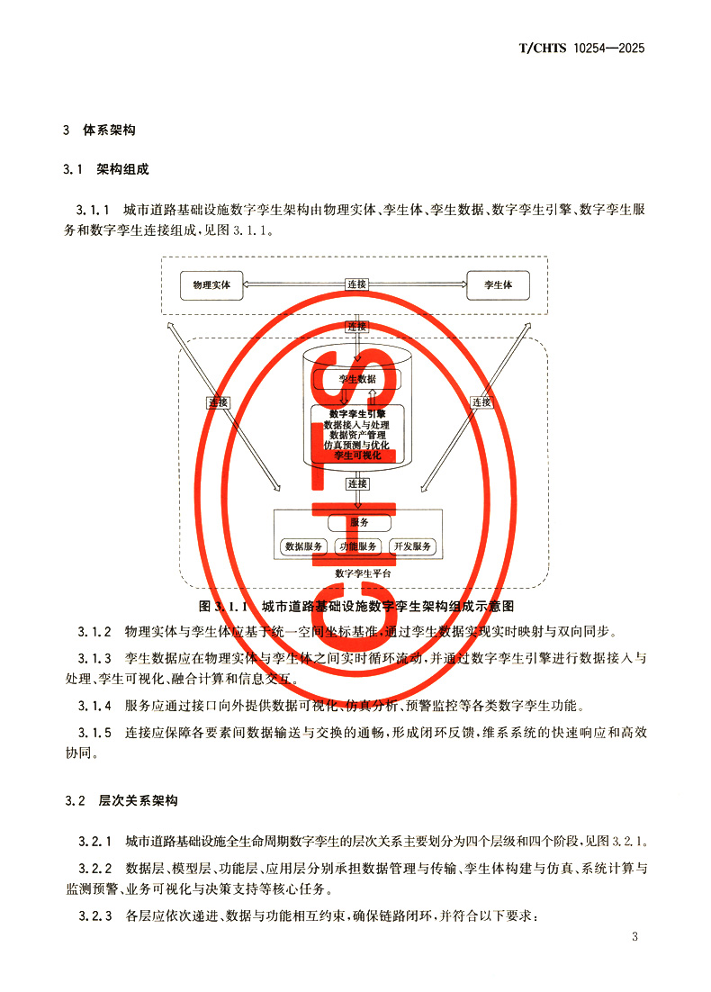 城市道路基础设施数字孪生技术指南 第1部分:体系架构及总体要求(T/CHTS 10254—2025)