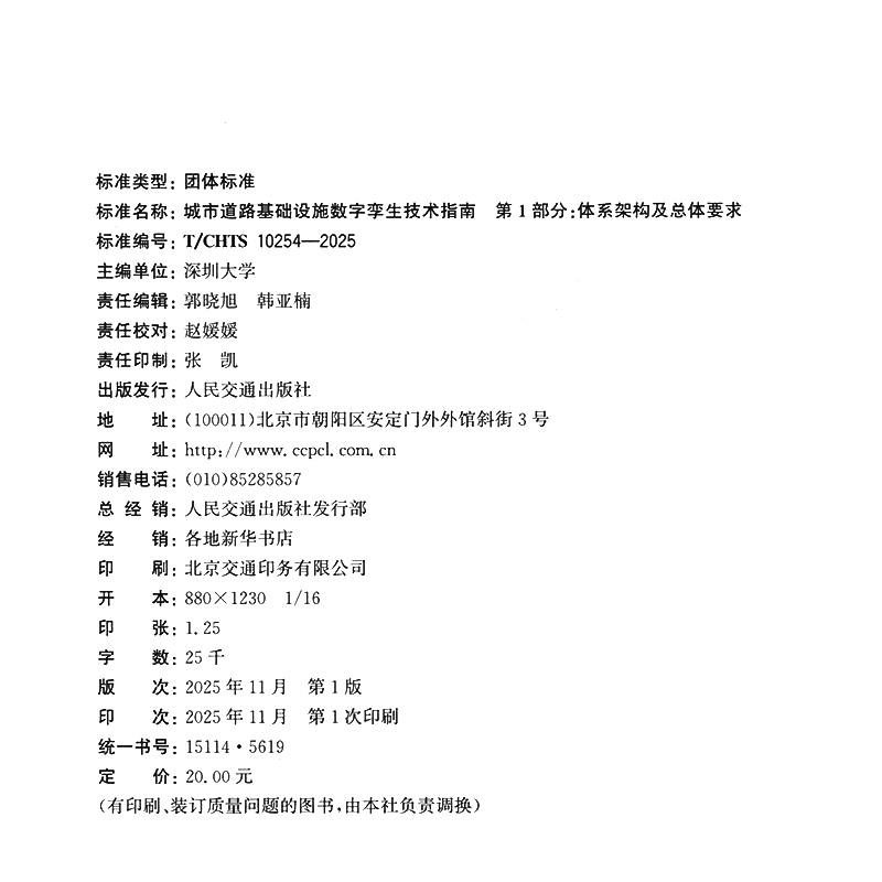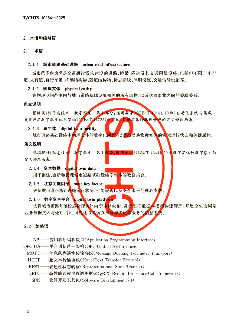 书名:城市道路基础设施数字孪生技术指南 第1部分:体系架构及总体要求(T/CHTS 10254—2025)