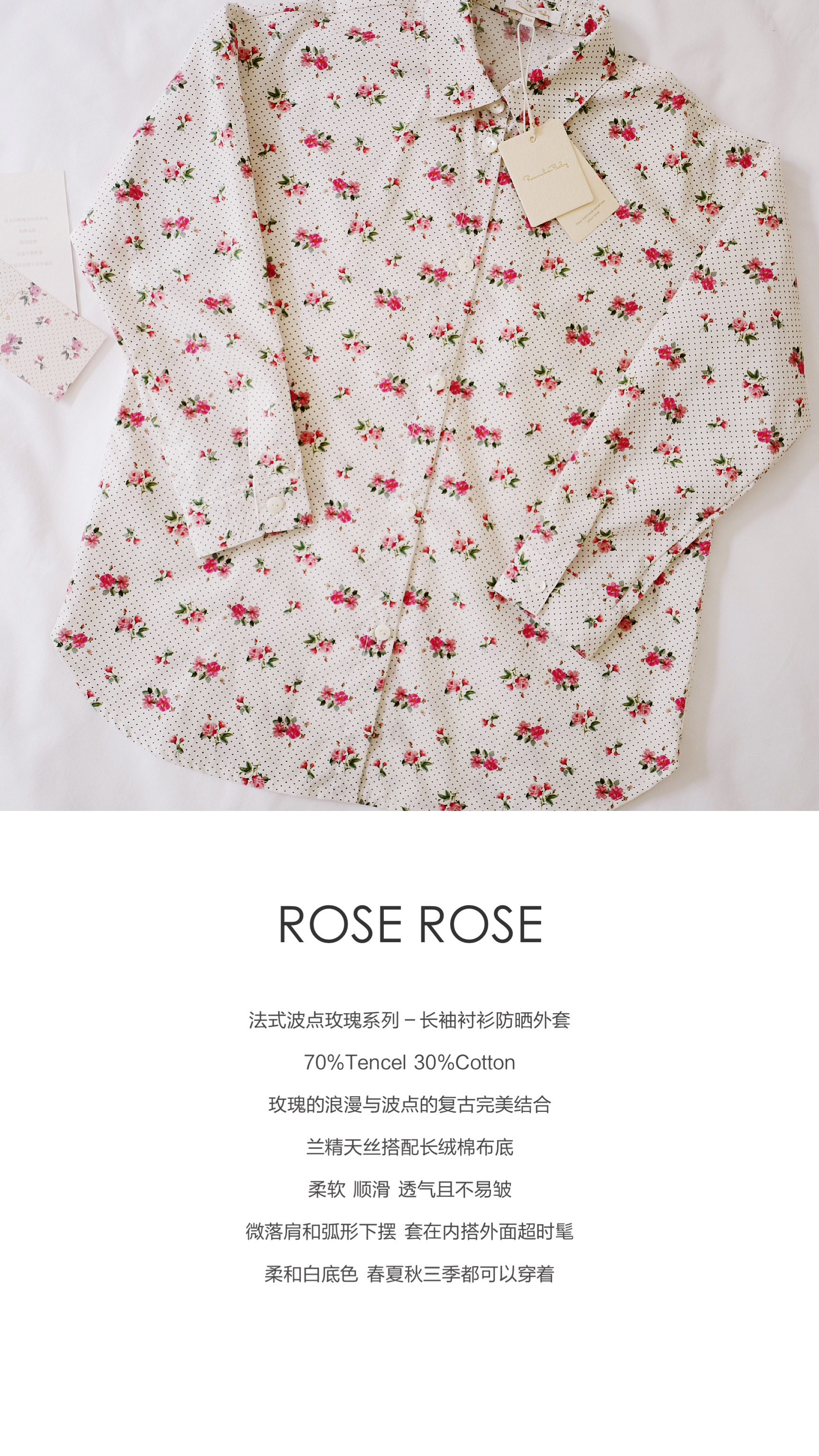 现货 / ROSE ROSE | 法式波点玫瑰系列 - 长袖衬衫防晒外套 柔和白