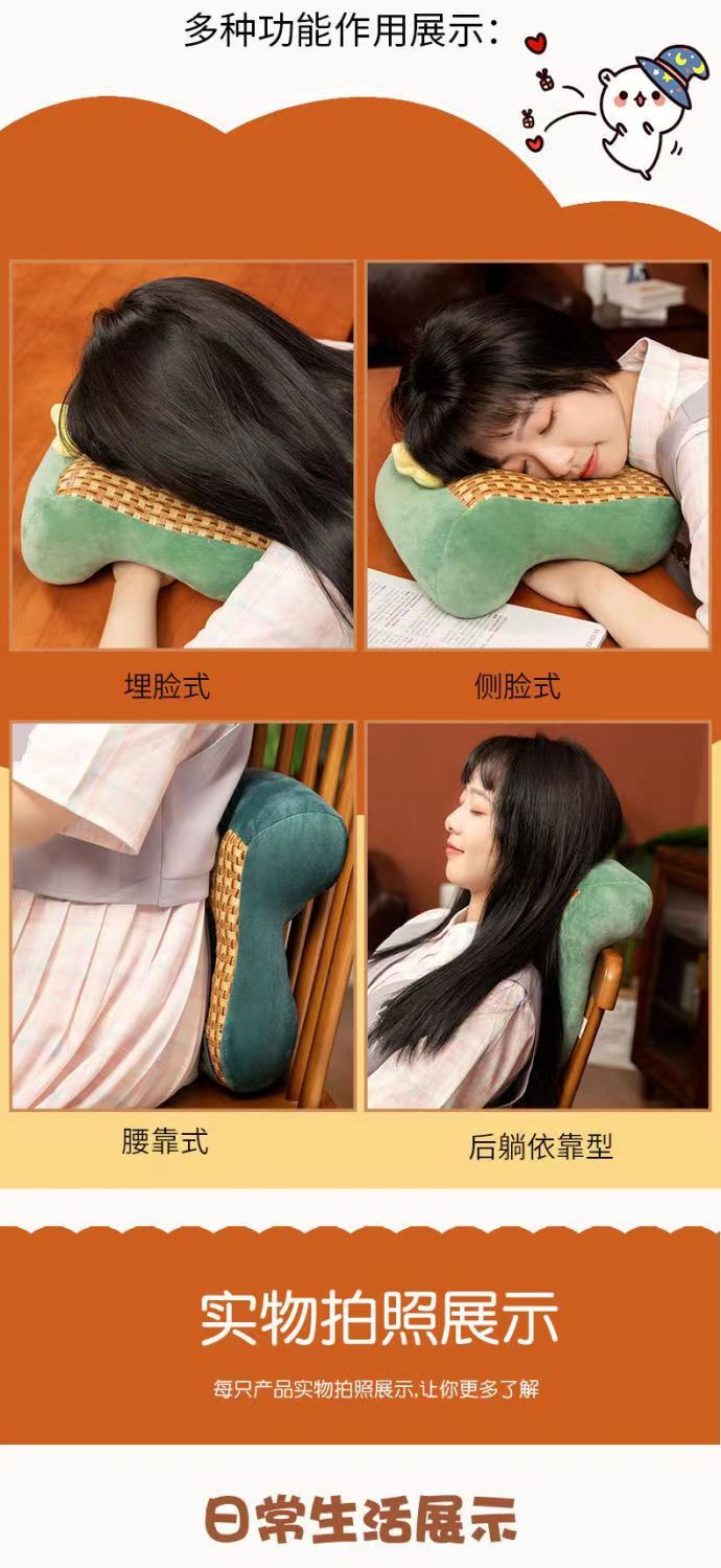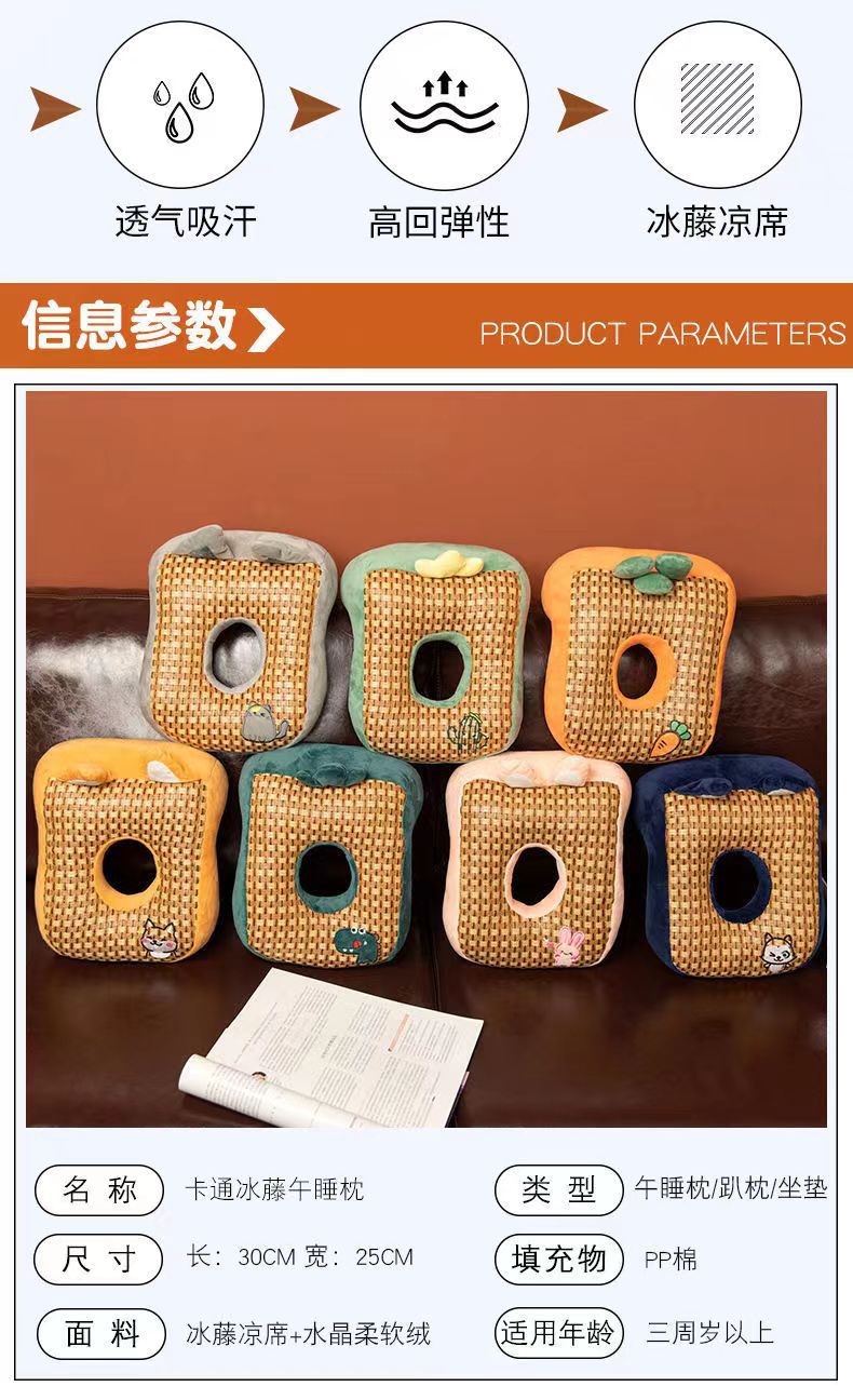 【冰藤凉面❗夏日不闷汗】夏季凉席午睡枕办公室午休趴趴枕便携式学生教室趴桌上睡觉枕头男。ri