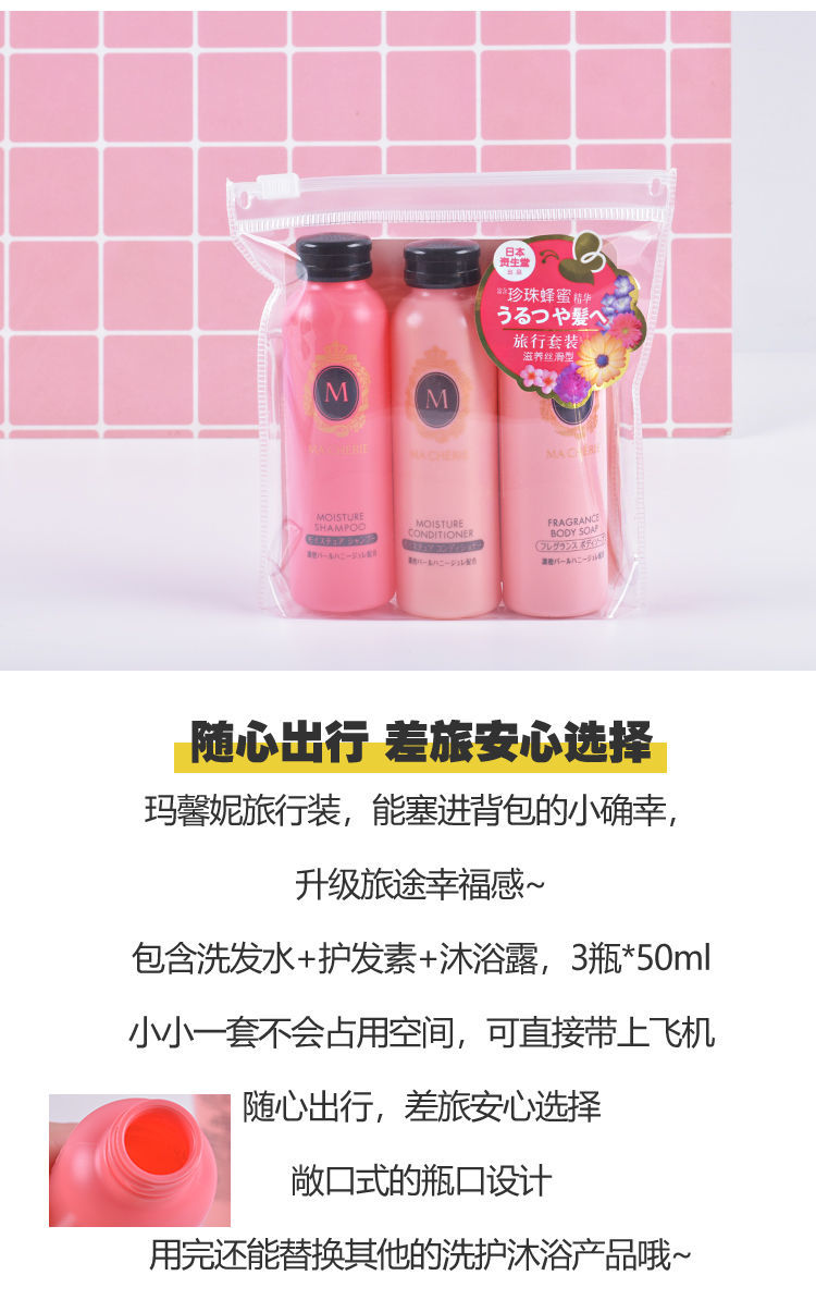 【爆款超低价预售 急单慎拍】日本玛馨妮旅行装洗发水护发素沐浴露无硅油洗护三件套装小样便携