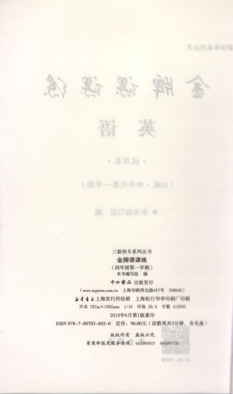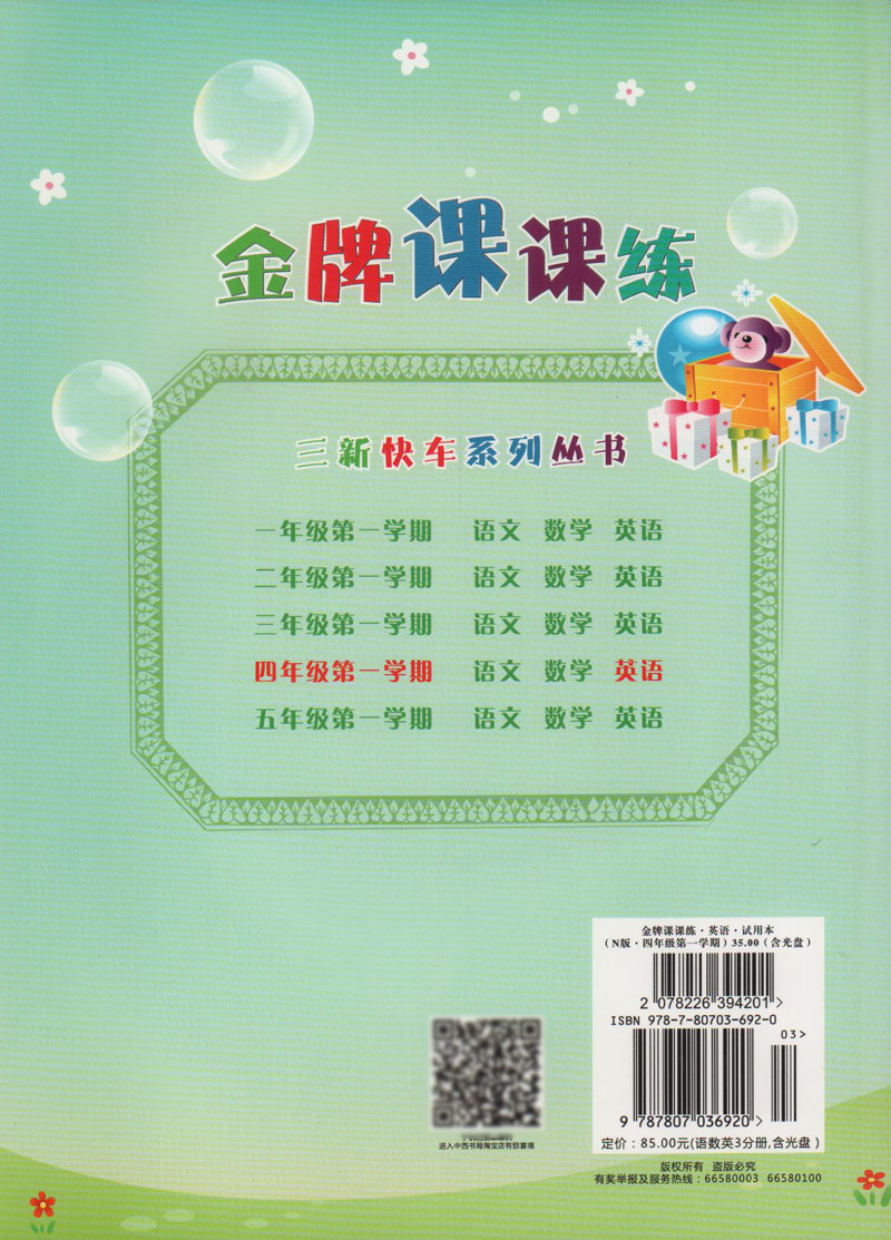 金牌课课练 英语N版 4年级上册/四年级第一学期 含光盘 三新快车系列丛书 上海小学教材教辅配套同步辅导课堂练习 中西书局