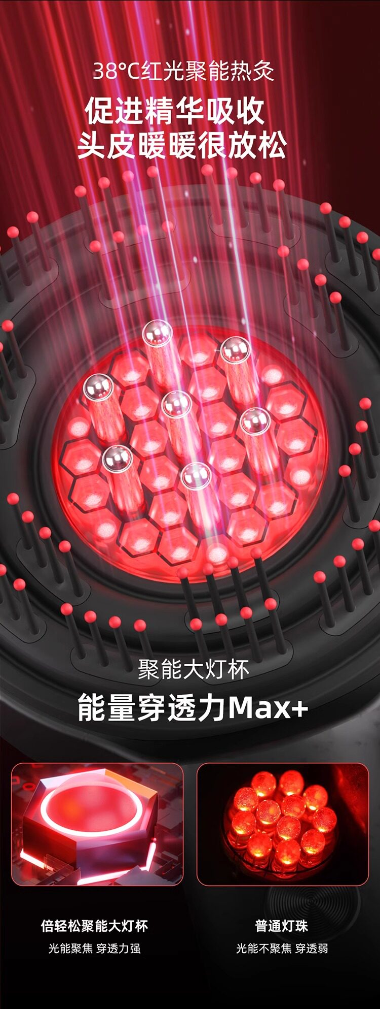 倍轻松Scalp3S头皮智能按摩梳二代 红光护发健发生发梳电动上药导入仪头皮头部按摩仪器 七夕情人节礼物
