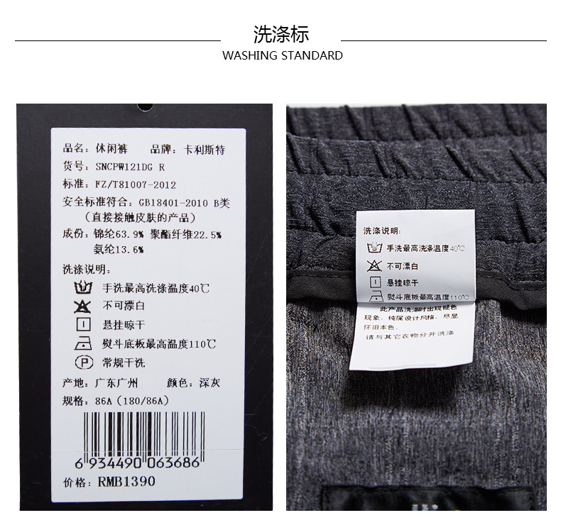 callisto深灰锦纶混纺休闲裤 SNCPW121DG
