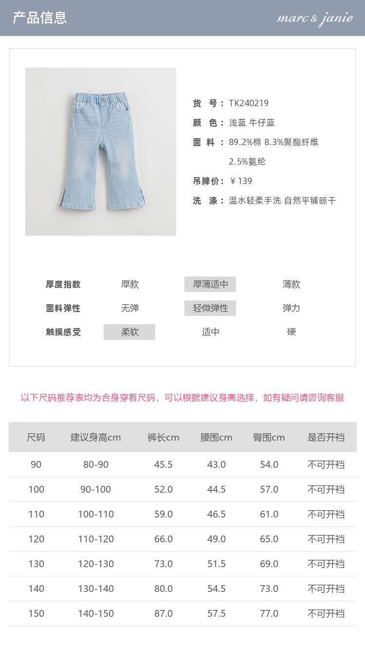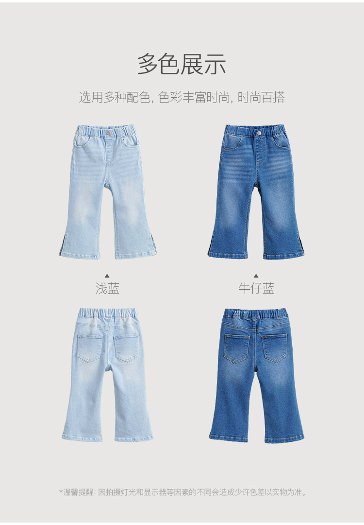 马克珍妮女童弹力牛仔喇叭裤 儿童修身牛仔裤春装新款裤子240219