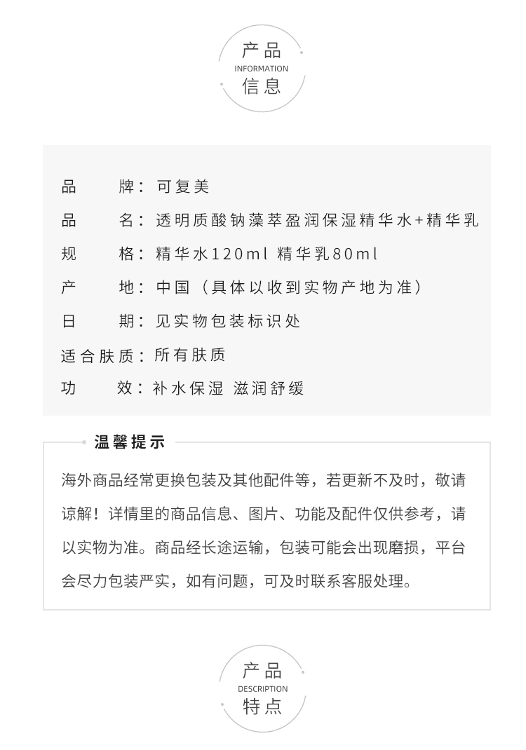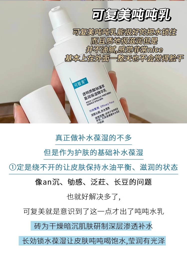 可复美吨吨【水+乳】套装补水保湿水乳春夏敏感肌适用爽肤水乳液