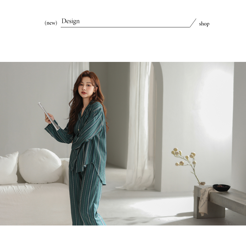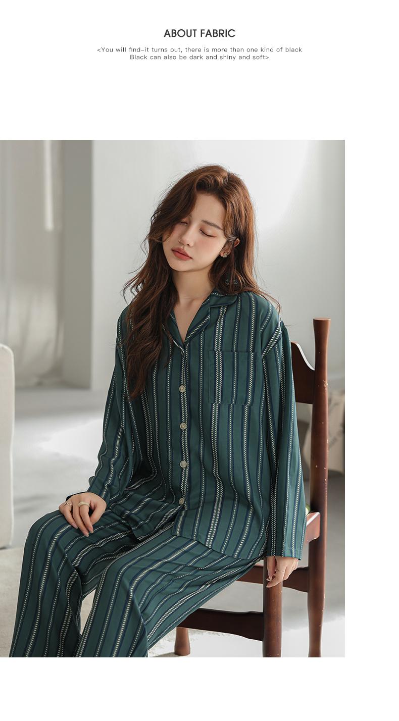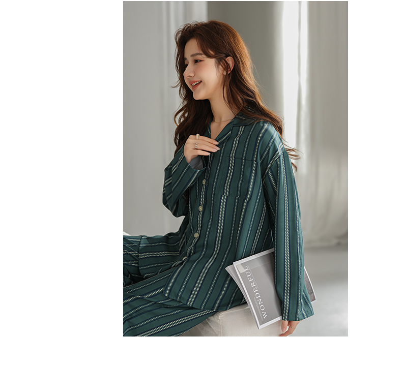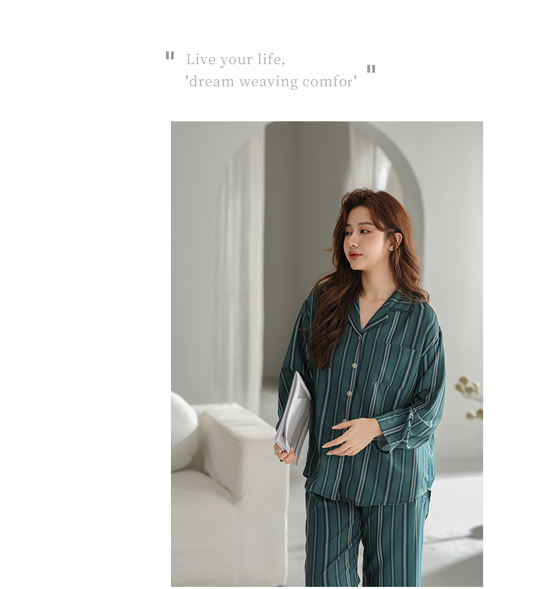 可人儿原创设计新款超柔缎女士睡衣春秋长袖时尚可外出家居服套装
