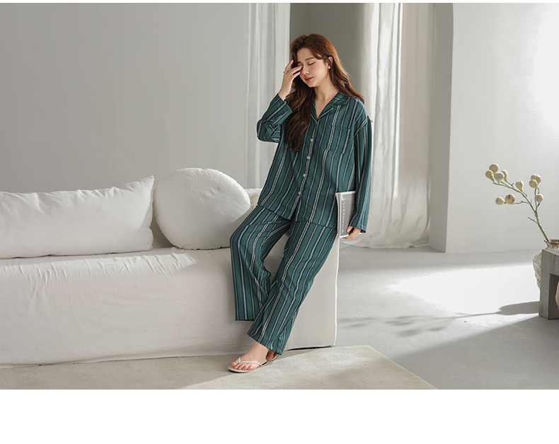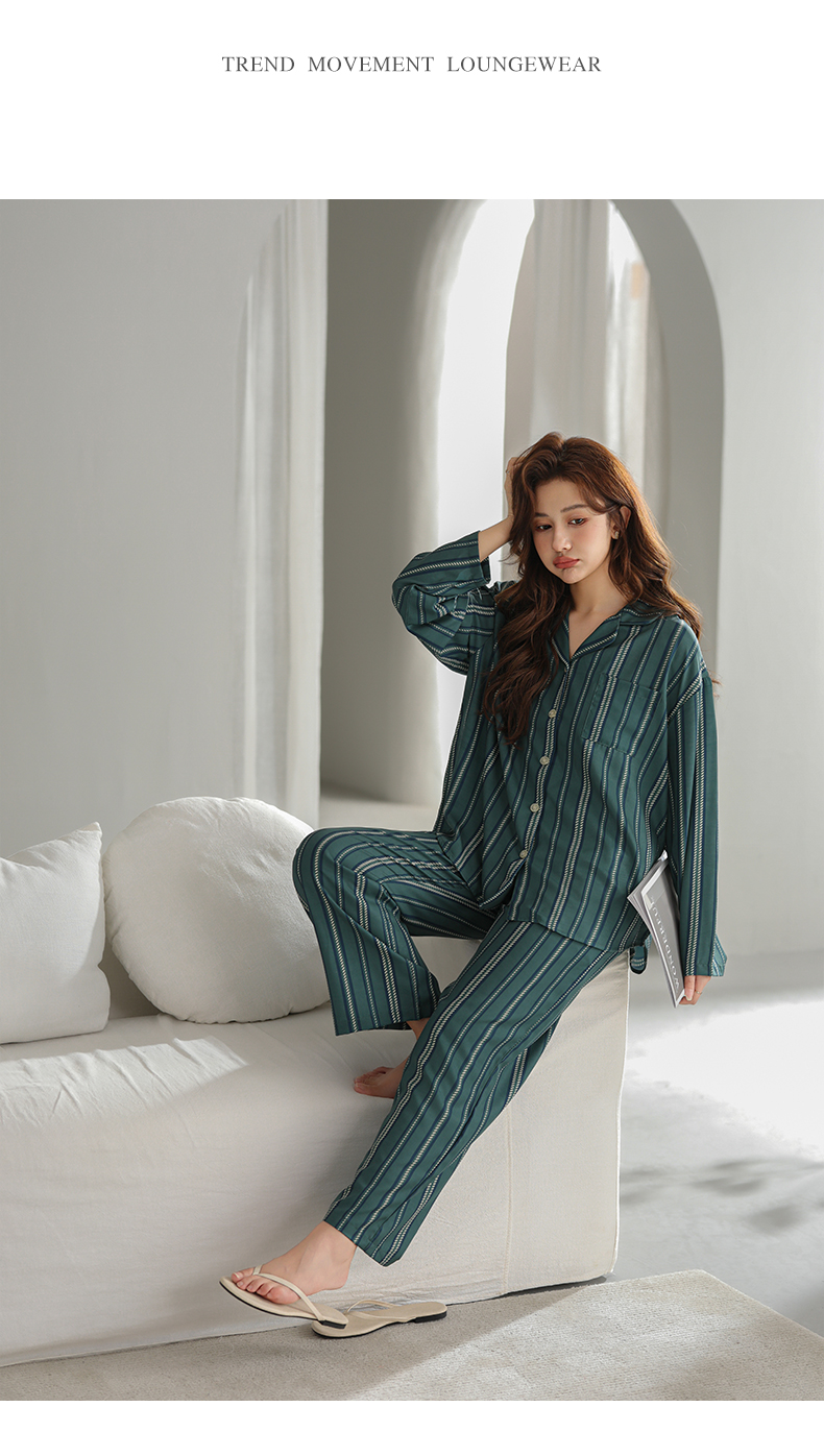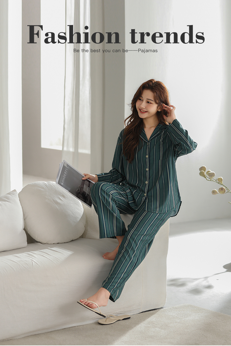 可人儿春秋季带胸垫泡泡绵女士长袖长裤睡衣可外出小众家居服套装