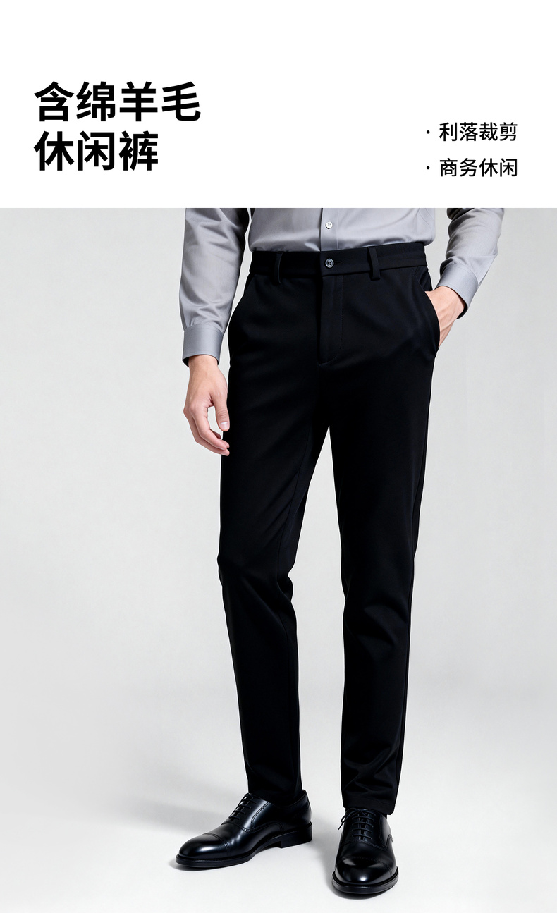 【含绵羊毛】圣得西2025年冬季男款休闲长裤时尚都市商务直筒裤