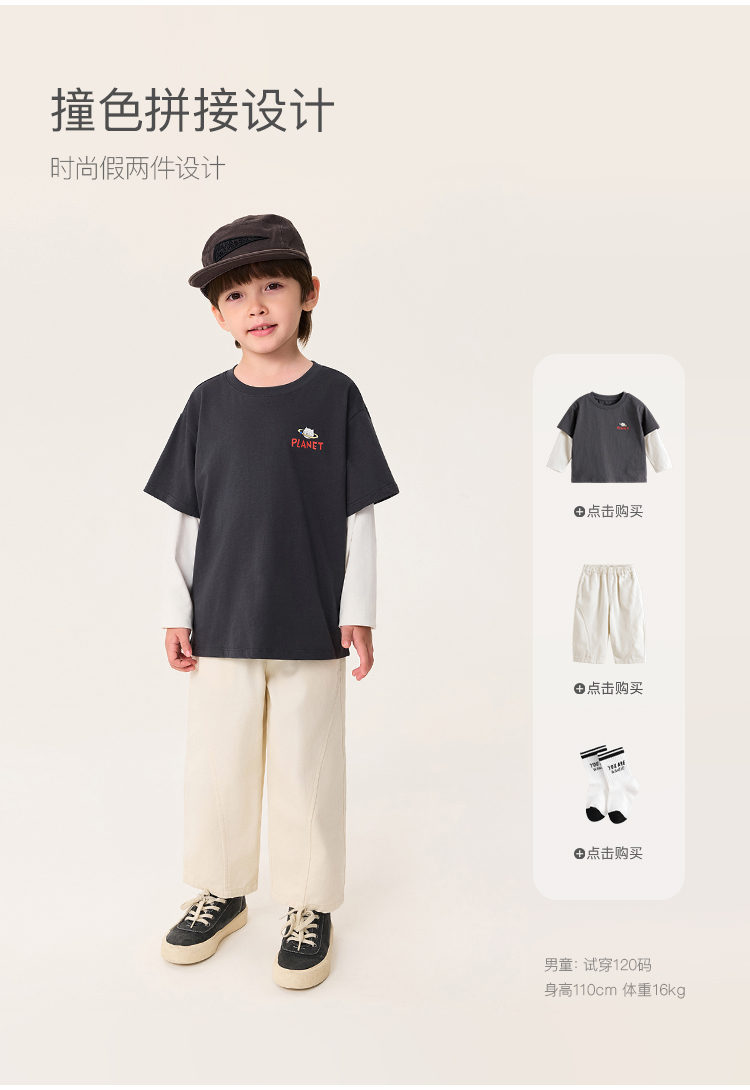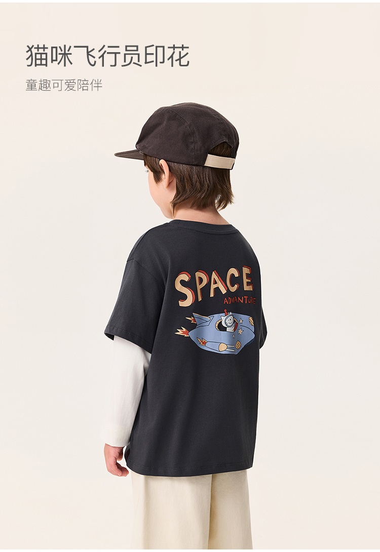 马克珍妮男童猫咪飞行员假两件T恤 宝宝上衣2025年秋装新款551120