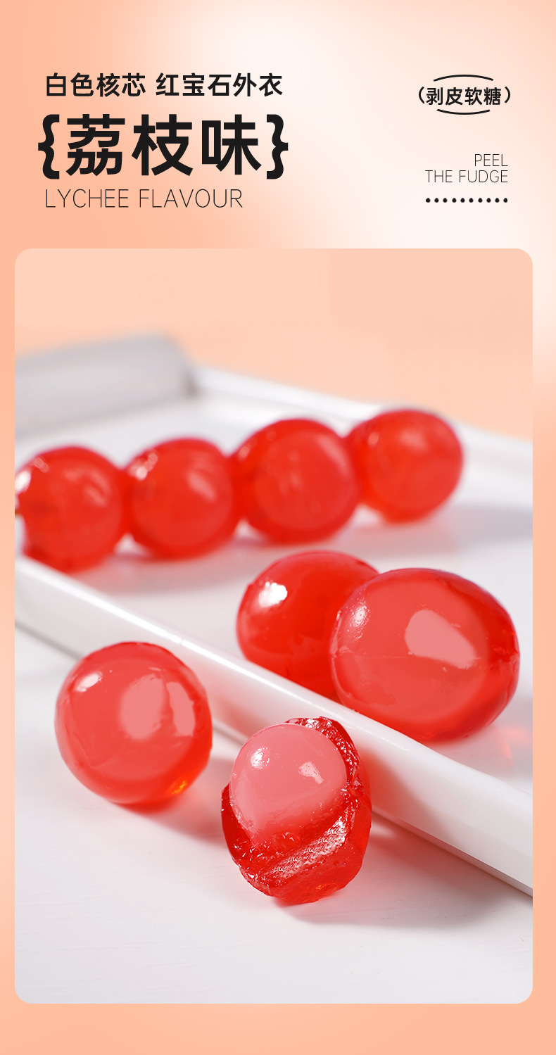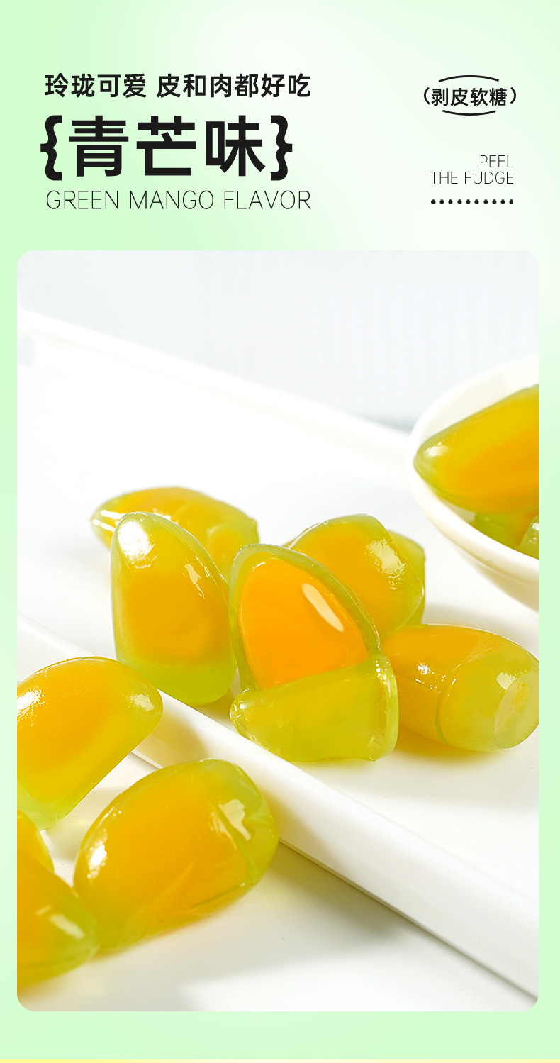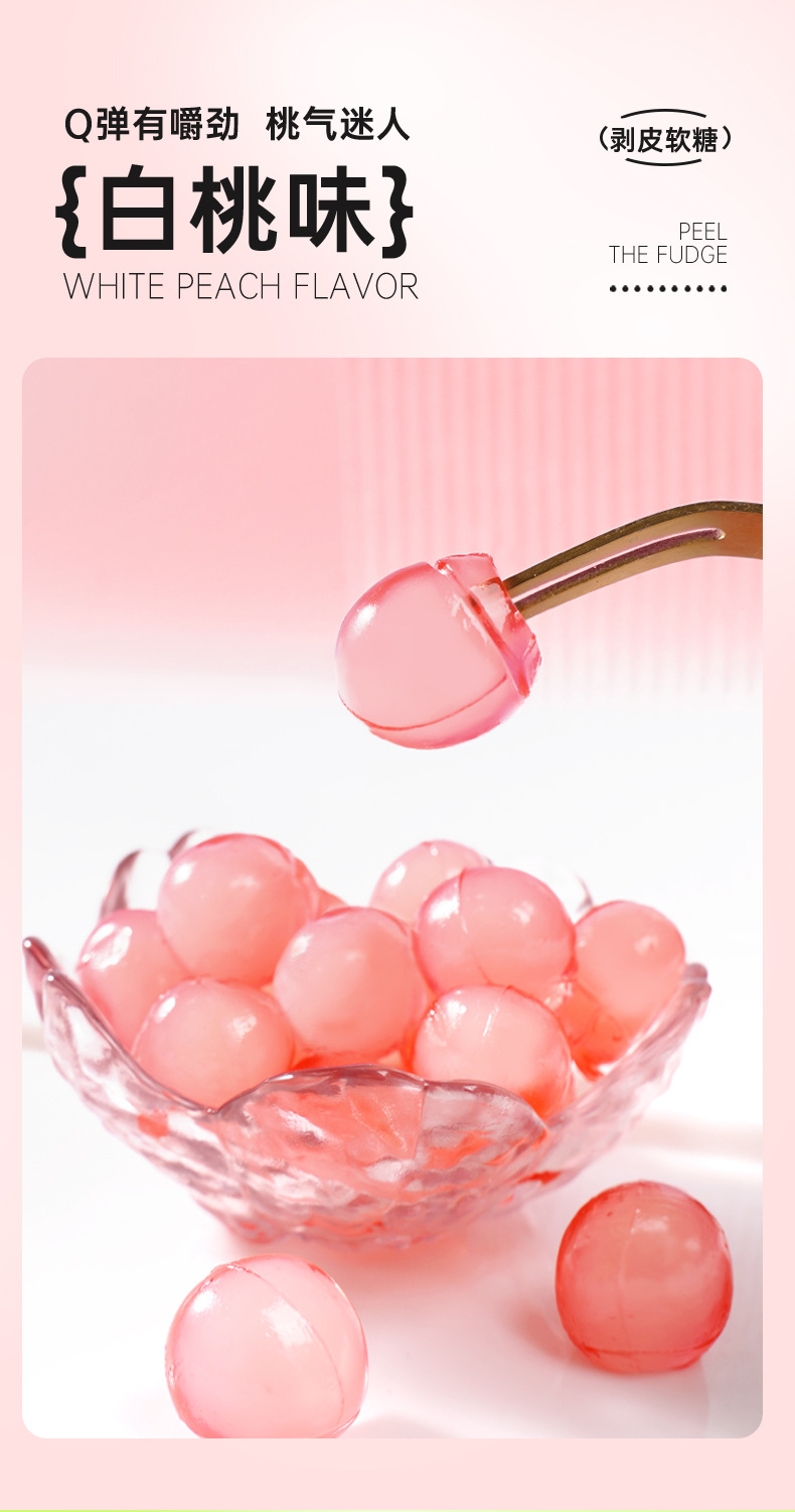 【0脂肪!能剥皮果汁软糖】白桃味,青提味,葡萄味,青芒味,黄芒味,荔枝味,抖音网红混合高颜值夹心QQ糖扒皮芒果橡皮糖果