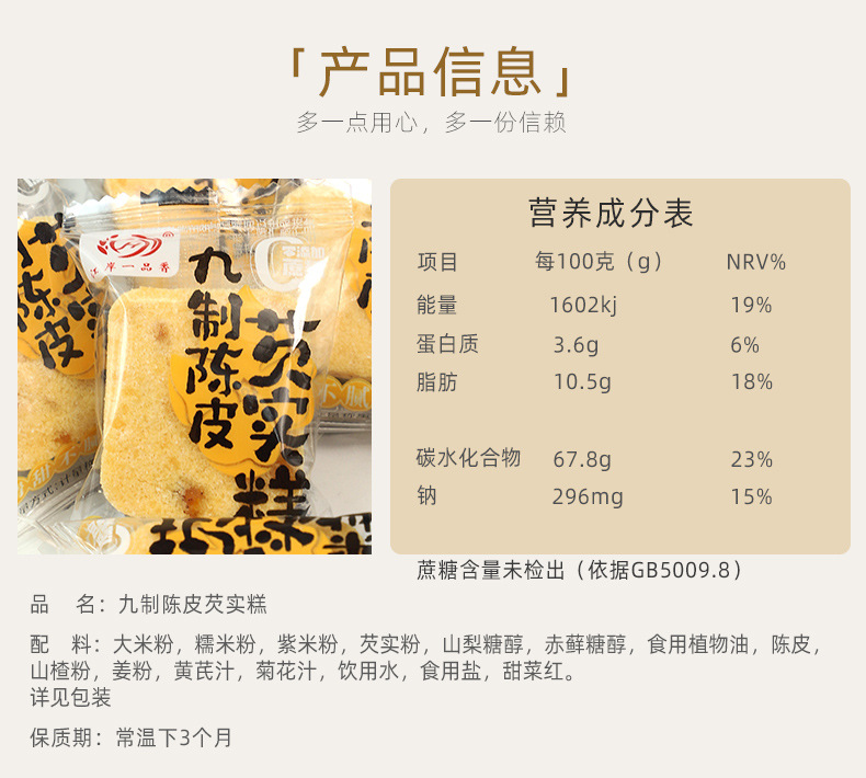 【不单独添加蔗糖!陈皮芡实糕】甄选优质原料制作,陈皮清香好回味,健康代餐轻食,早餐代餐下午茶休闲零食L