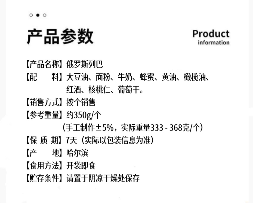 俄罗斯列巴【按个销售 参考350g ±5%】
