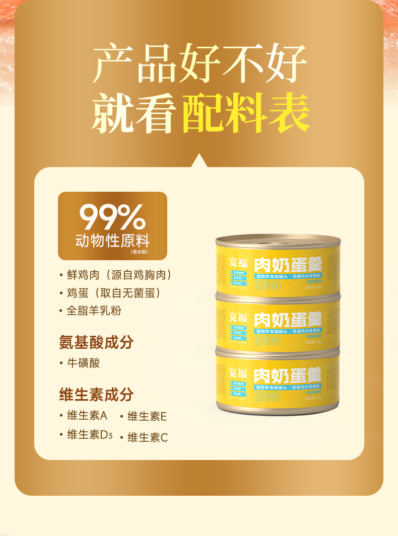【蛋羹猫饭】宽福 限时尝鲜价![新老包装随机发]鲜鸡肉+无菌蛋+羊奶粉 美味营养 消化易吸收 整罐肉奶优质蛋白