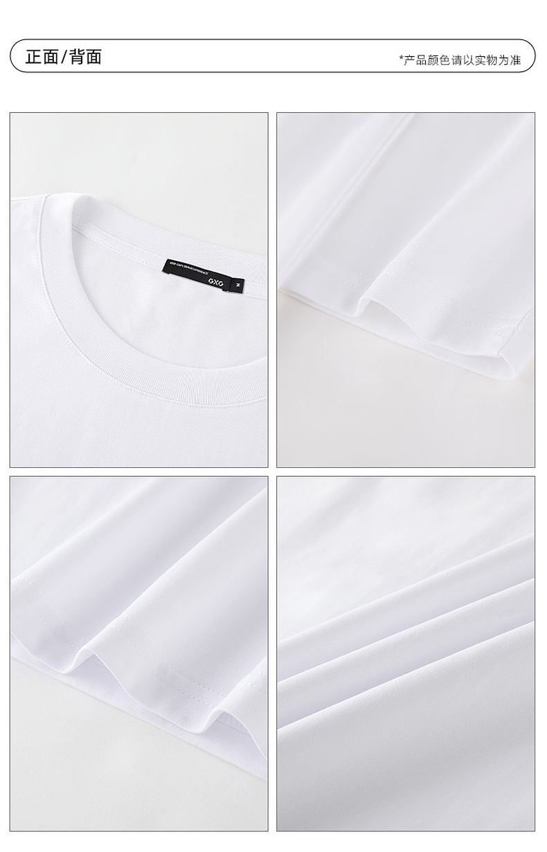 GXG男装 白色简约圆领短袖T恤满身植绒 夏季热卖