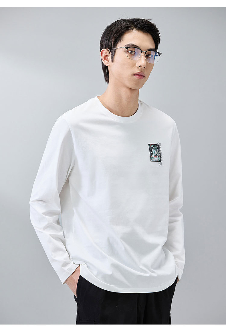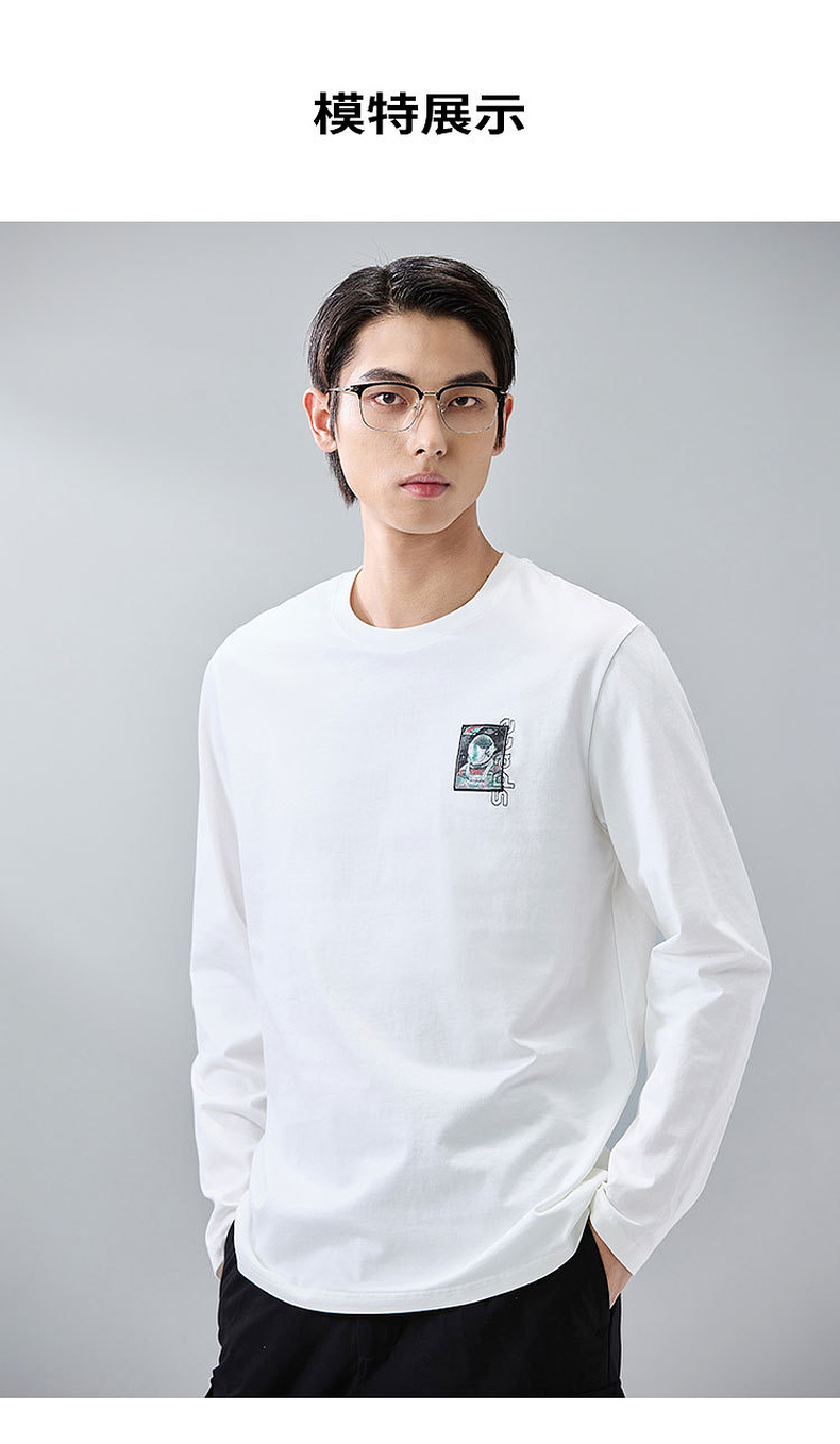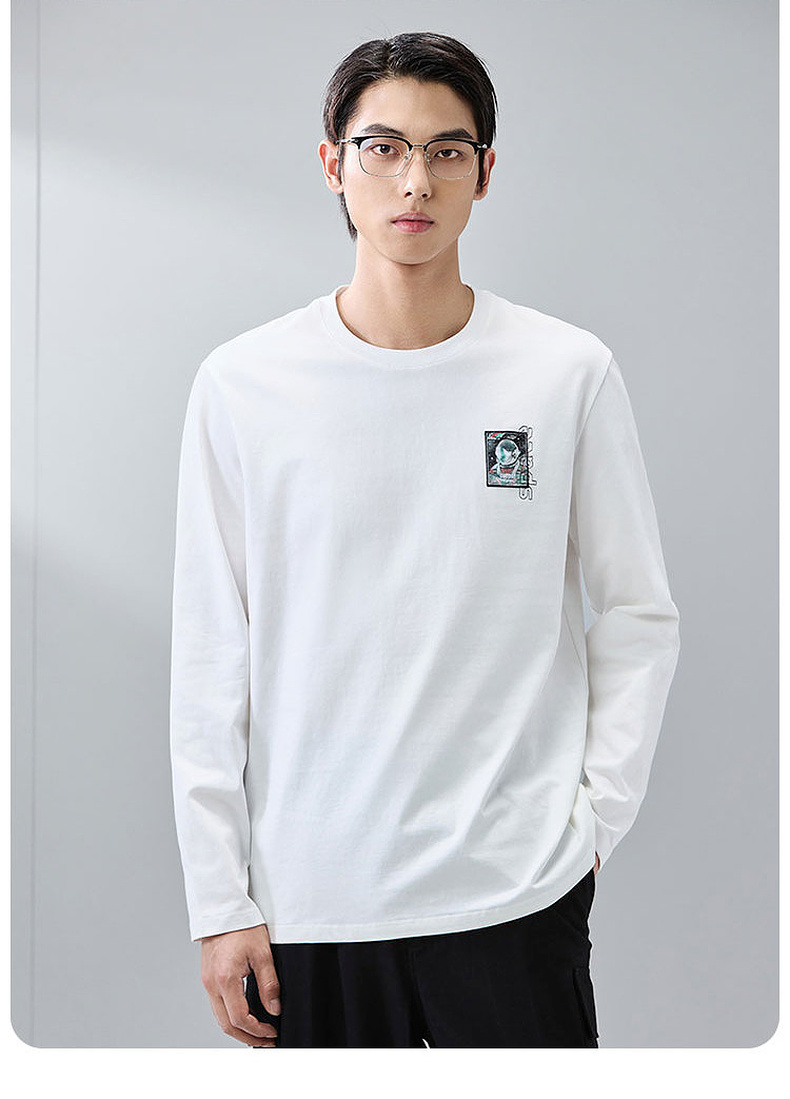 GXG男装【100%棉】春季潮流宇航员刺绣圆领休闲轻薄男式长袖t恤K&C