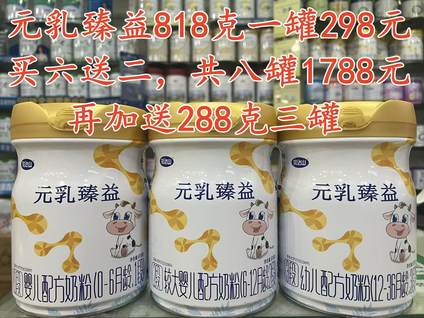 【完达山元乳臻益818克】一罐298元,买六送二,共818克八罐1788元,再加送288克三罐.