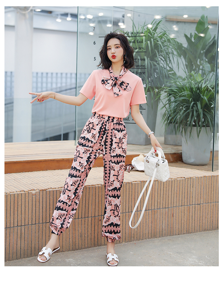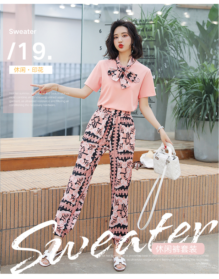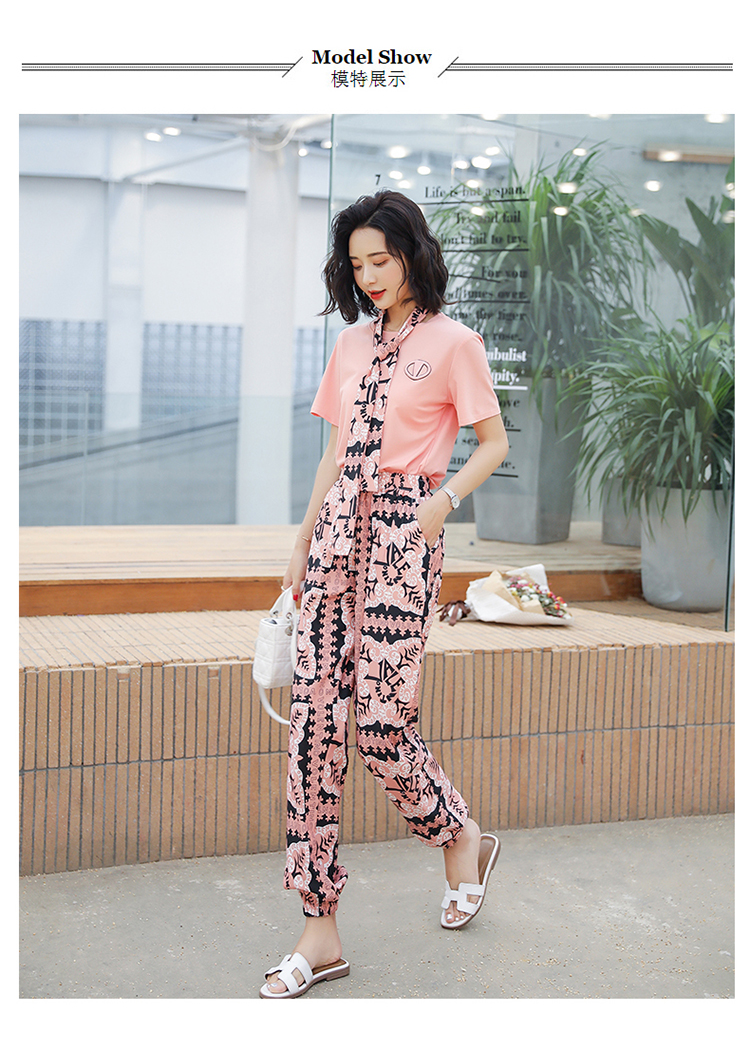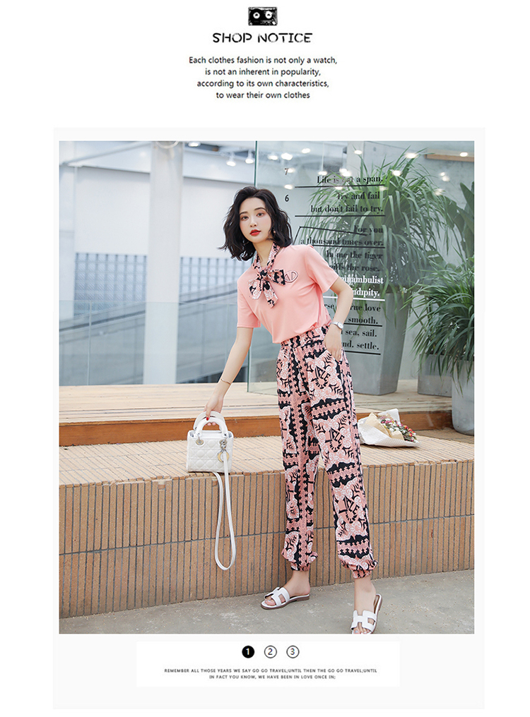 OLrain欧芮儿甜美约会必备粉色上衣裤子套装两件套